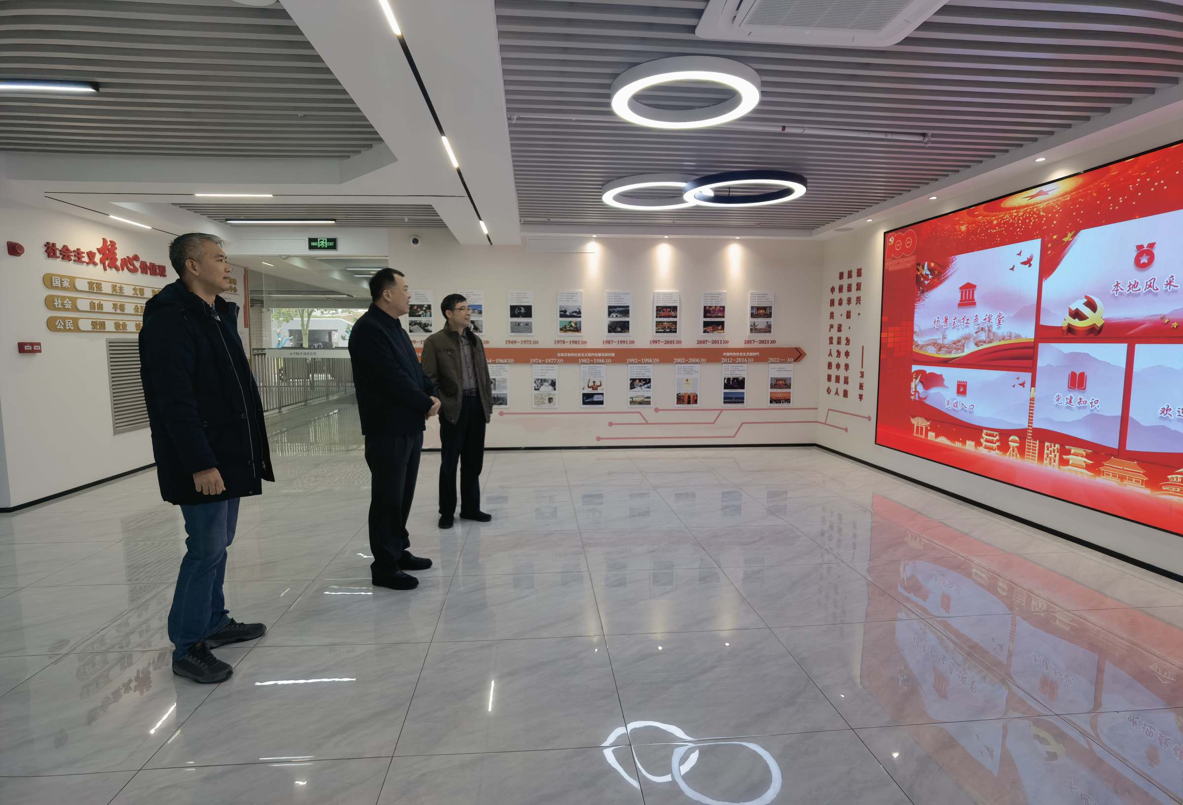 王志云对核查组的到来表示热烈欢迎,要求学校工作人员积极配合做好实地核查工作。陈瑞锋向大家说明了本次实地核查的基本任务和重点工作。随后核查组根据《中共广东省委教育工委关于开展2023年全省高校党委书记抓基层党建工作述职评议考核实地核查工作的通知》要求,对标对表《2023年全省公办高校党建工作评价表》各项指标,对学校基层党建工作进行了逐一核查。核查组一行还实地走访了马克思主义学院党委、金融学院党委、研究生党支部、校团委党支部,参观了思政长廊、智慧党建馆、研究生“一站式”社区、党员活动室、校史馆等场所,认真检查了发展党员材料、两个党内统计系统,了解学校党建“双创”工作相关情况,并对学校以党建促团建、发展团员、青年团员推优入党等工作展开调研和指导。