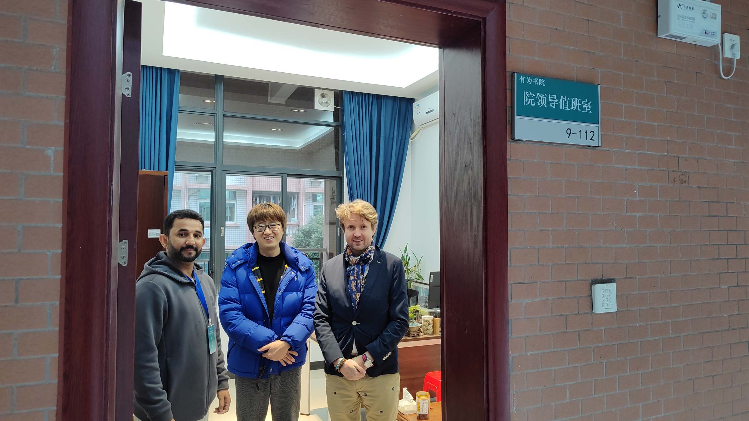 12月17日下午,美国詹姆斯麦迪逊大学商学院的郭琤祺教授、荷兰鹿特丹管理学院博士Vladimir Kysucky老师、中国科技大学管理学院博士巴基斯坦的ALI N KHAN老师,走进有为书院9栋一站式学生社区参观访问。国际商学院长黄庆安、副院长彭中文、于成学陪同交流。