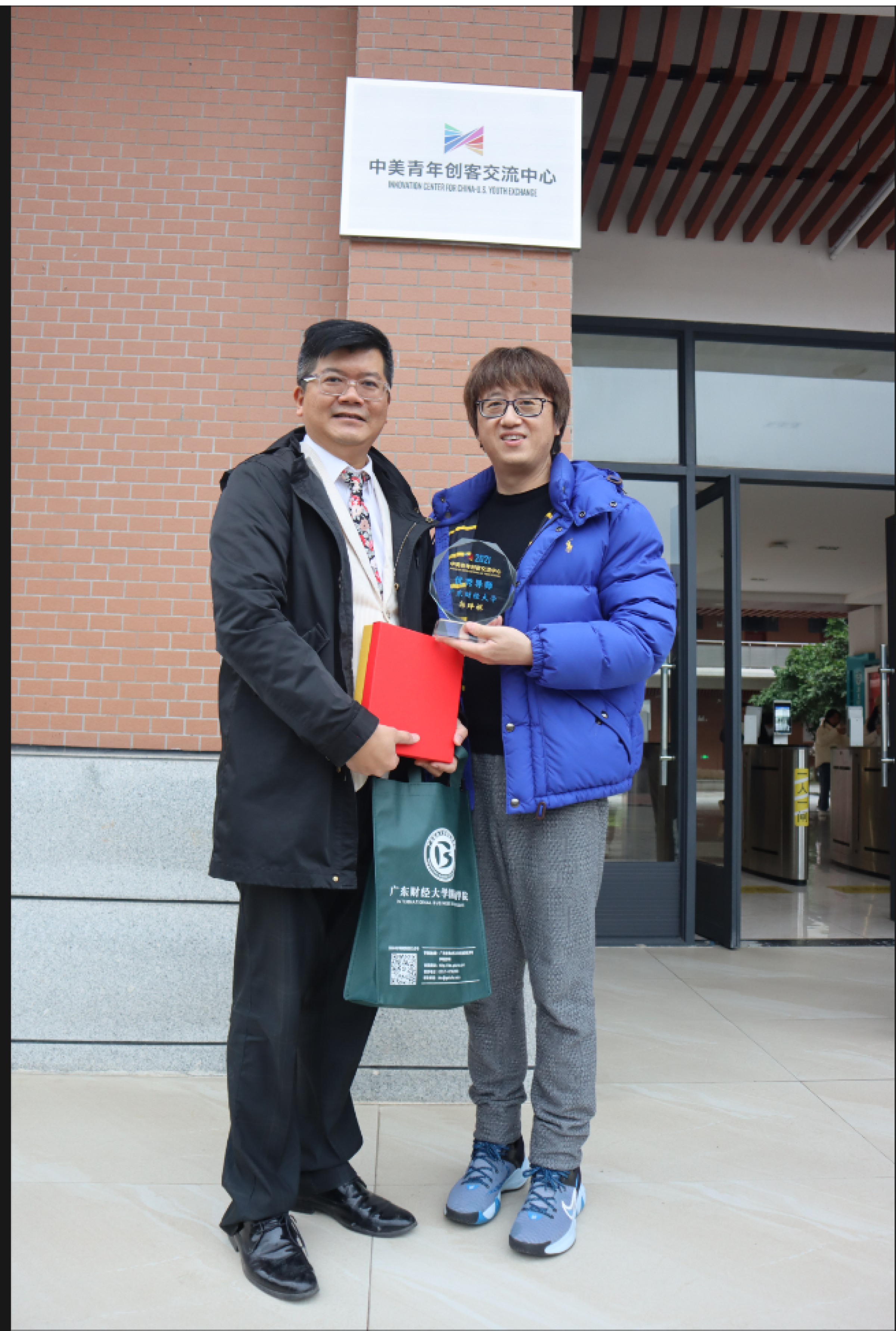 三位国际青年学者首先到有为书院9栋职业规划指导室与同学们亲切交流,就正在举行的国际商学院首届商业案例分析大赛,郭琤祺鼓励同学们勇于踏出社会实践调研的“第一步”,在过程中发现问题、解决问题,从而增长知识、积累经验。郭琤祺作为学校客座教授荣获教育部2021年度“中美青年创客交流中心优秀导师奖”。在我校顾文静教授及MBA优秀校友代表的共同见证下,黄庆安把沉甸甸奖杯送达给疫情后首次入境访问的郭教授,希望广大师生一起努力把中美青年创客大赛、中美青年创客交流中心的工作做好。
