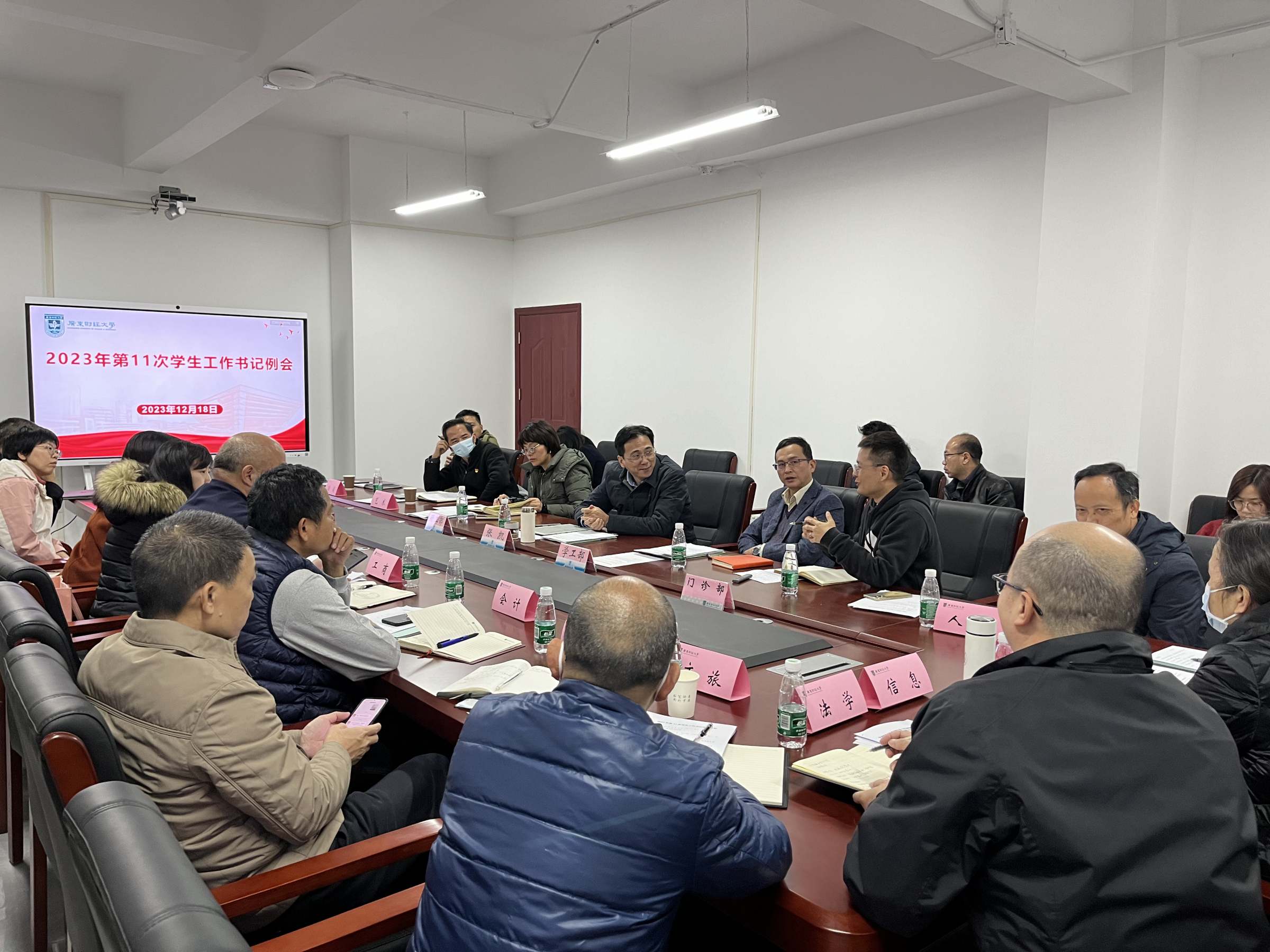 12月18日下午,我校2023年第11次学生工作书记例会在同德楼238室召开。本次会议主要围绕学院领导联系学生情况和班主任管理办法进行讨论,学工部、研工部、门诊部相关负责人及各学院学生工作书记与会,会议由副校长张凯主持。