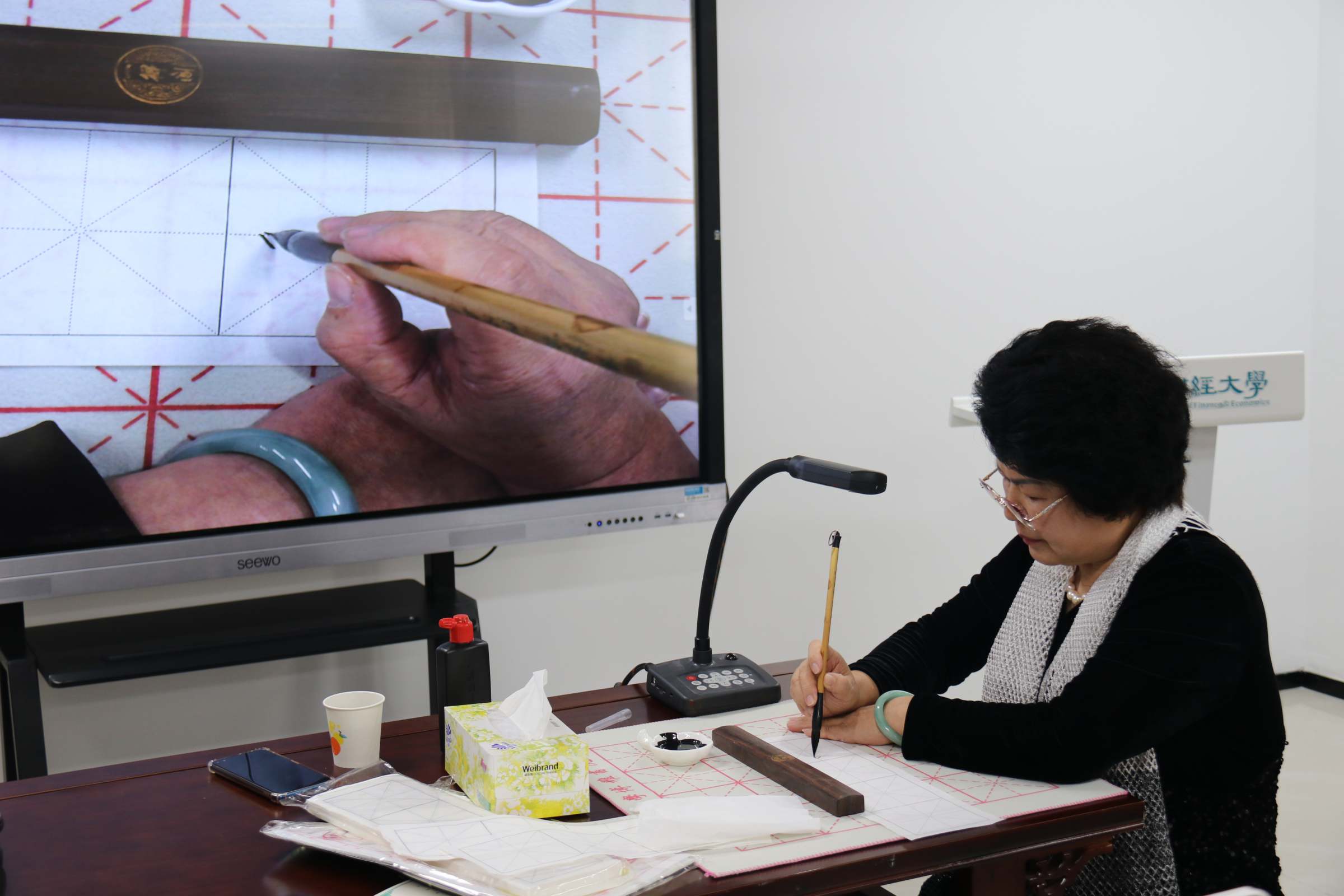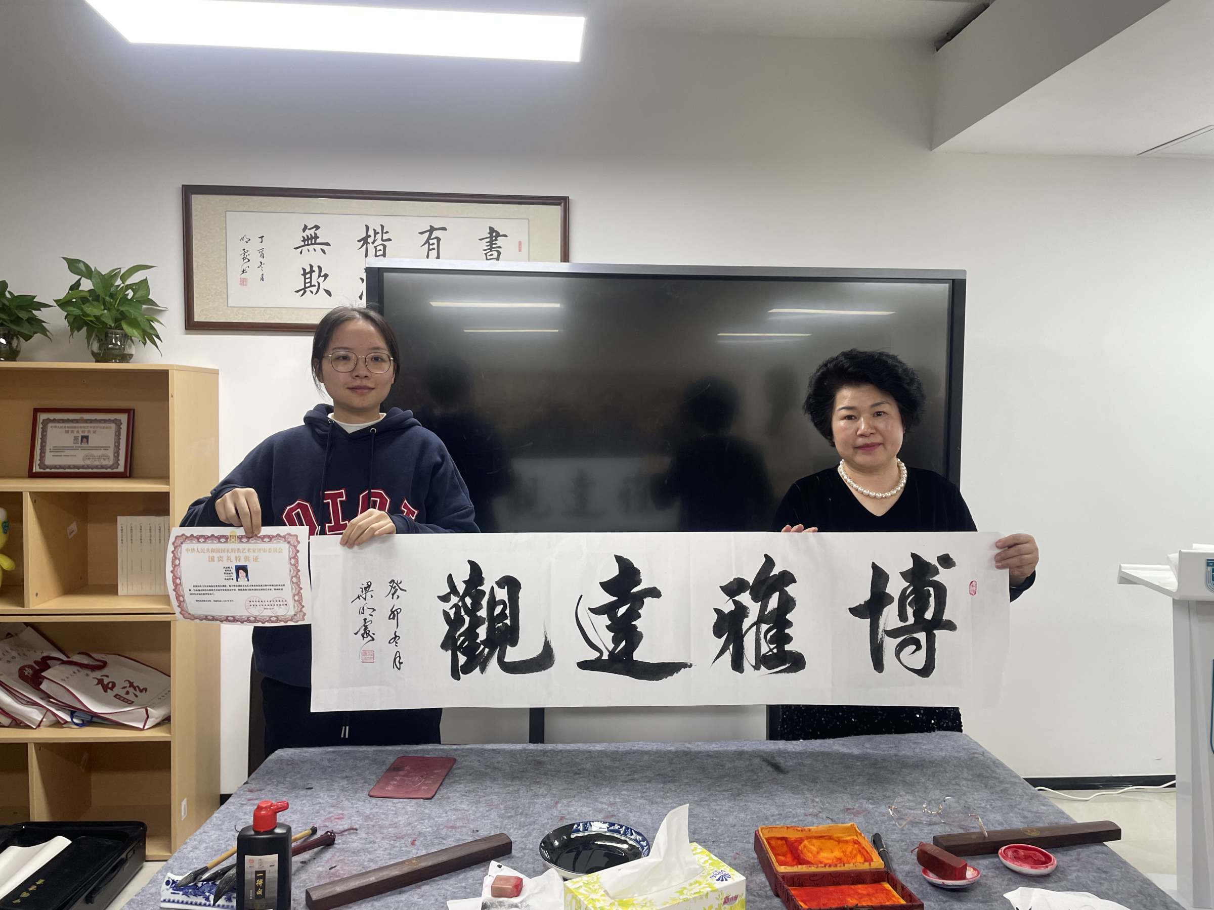 随后,梁明霞为同学们倾情讲授书法第一课,分享书法的相关知识以及书写的重要技巧。在座的老师和同学纷纷表示受益匪浅,提高了对书法书写的鉴赏能力和兴趣。