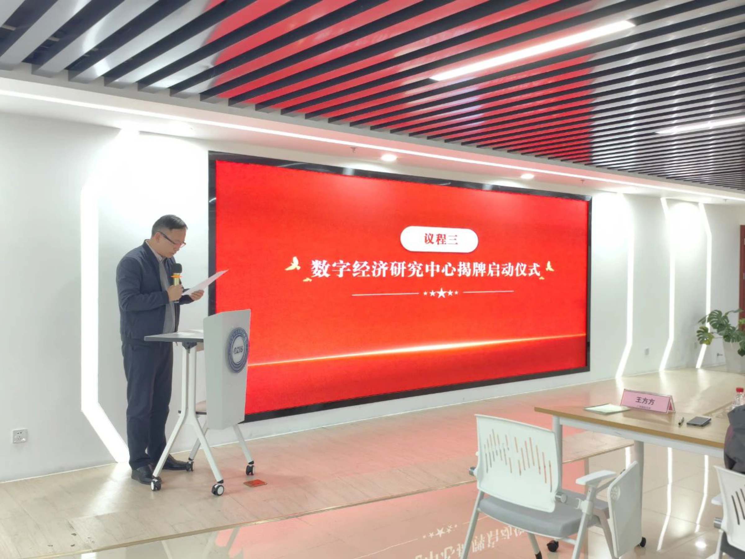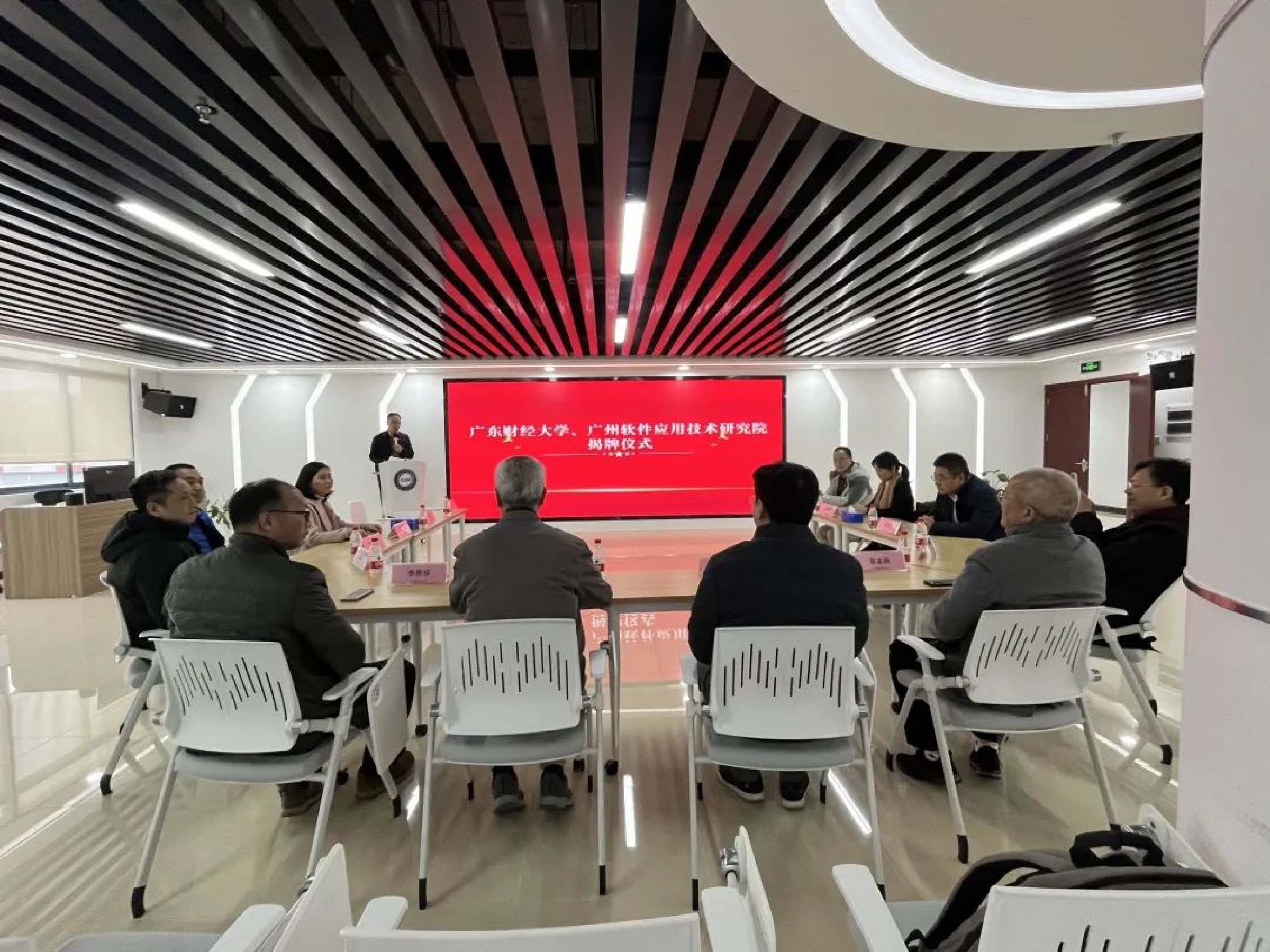 12 月 22 日下午,广东财经大学、广州软件应用技术研究院数字经济研究中心揭牌仪式在广州南沙举行。我校副校长张凯,社会合作处处长黎友焕,数字经济学院党委书记李恩华、院长王方方,中国数据研究院院长李德洗,以及广州软件应用技术研究院、广州市电子口岸管理有限公司、广州市数字金融协会、中科汇智(广东)信息科技有限公司等业界领导和专家出席揭牌仪式。