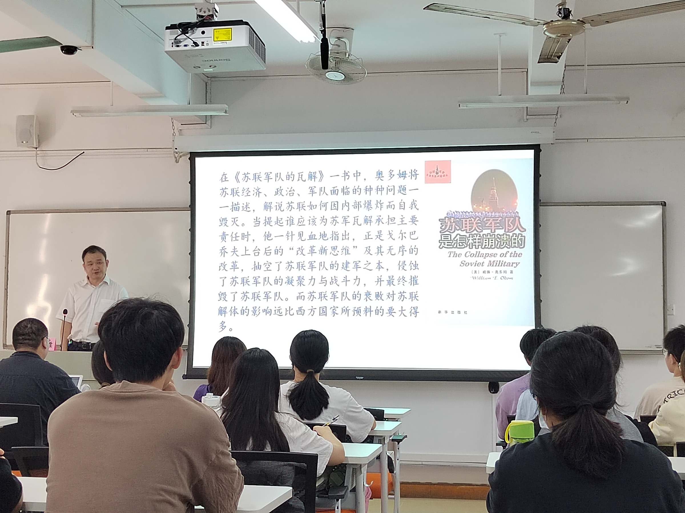 胡国胜对我国现代化国防和军队建设、武器装备和国际局势有着独到的研究,授课中旁征博引,幽默风趣,营造了良好的课堂氛围。讲座结束后,同学们仍然不愿意离去,围绕习近平强军思想这一主题和胡国胜教授一起继续深入探究。