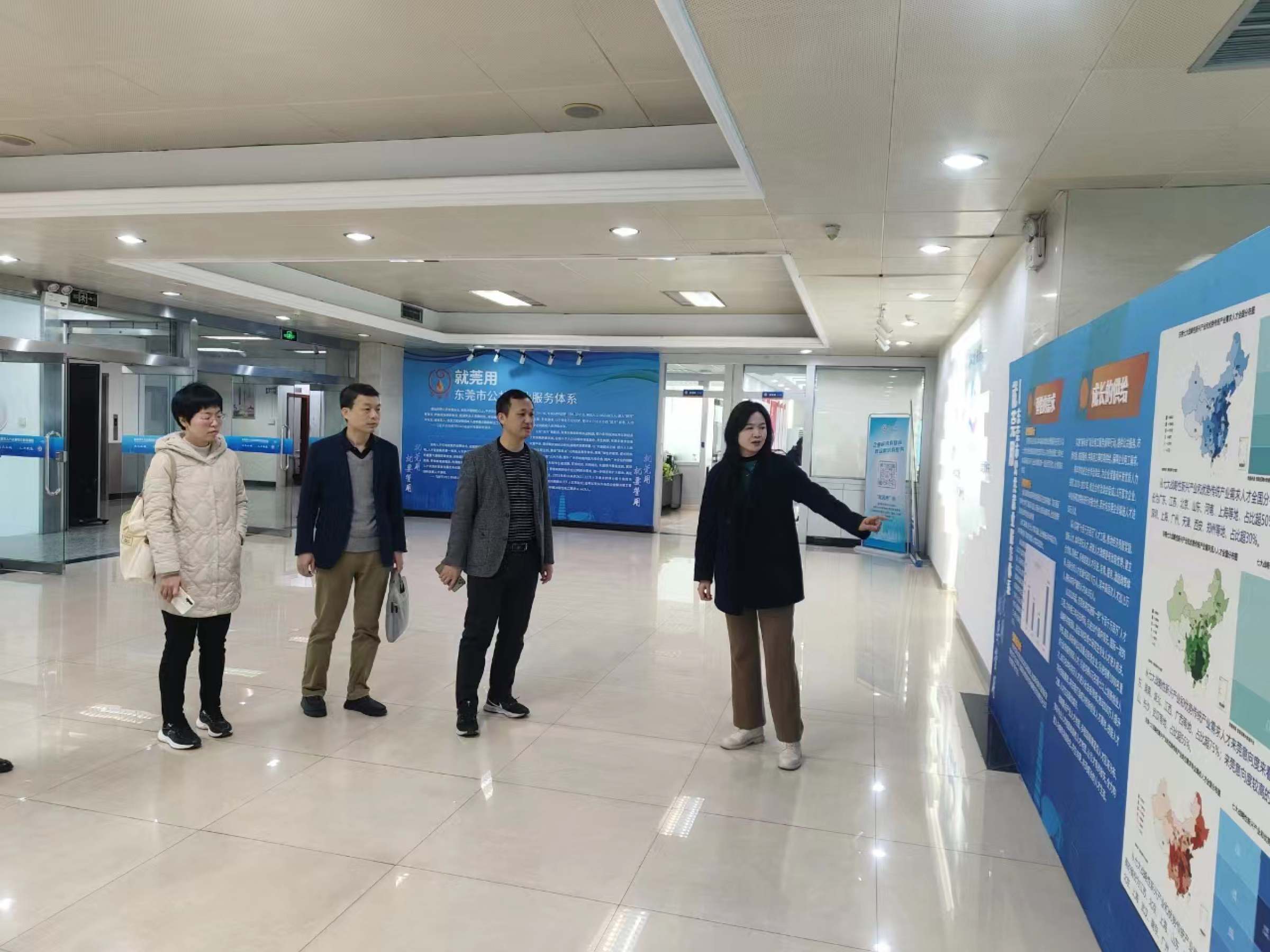 叶桂兴对我校学工团队一行的到来表示欢迎,并带领大家参观了中心的服务大厅。在现场参观过程中,叶桂兴详细介绍了中心的运行机制、服务流程以及取得的成果,东莞市的就业规模、企业用人需求变化和就业创业政策。在座谈会上,梁铿浩介绍了学校学科专业设置和毕业生毕业去向分布等情况,并向对方一直以来关心和支持学校的就业工作表示感谢,希望能够继续大力支持学校就业工作,重点为我校学生推荐优质企业和实习就业岗位。双方还就“如何结合学校学科专业特色进一步加强合作促就业”等进行深入探讨,希望彼此加强沟通交流,建立长效互动机制,共同为毕业生搭建实习实践和就业平台,助力毕业生高质量充分就业。