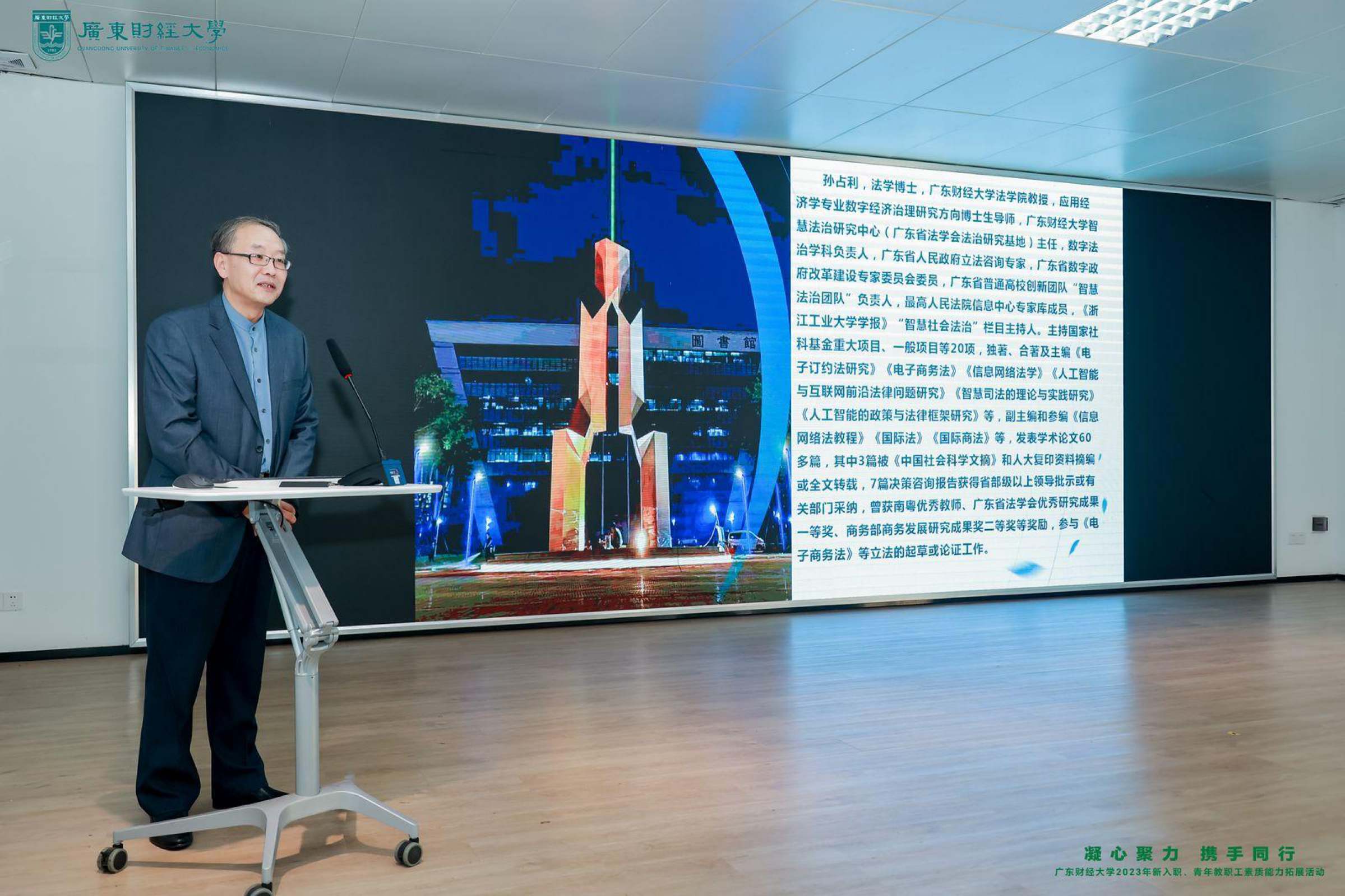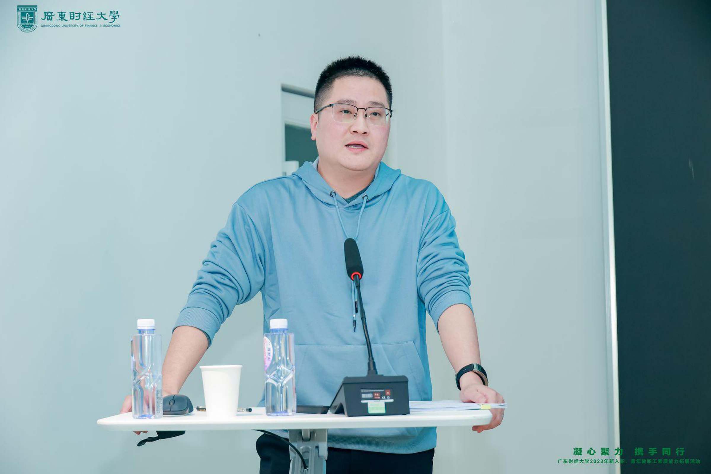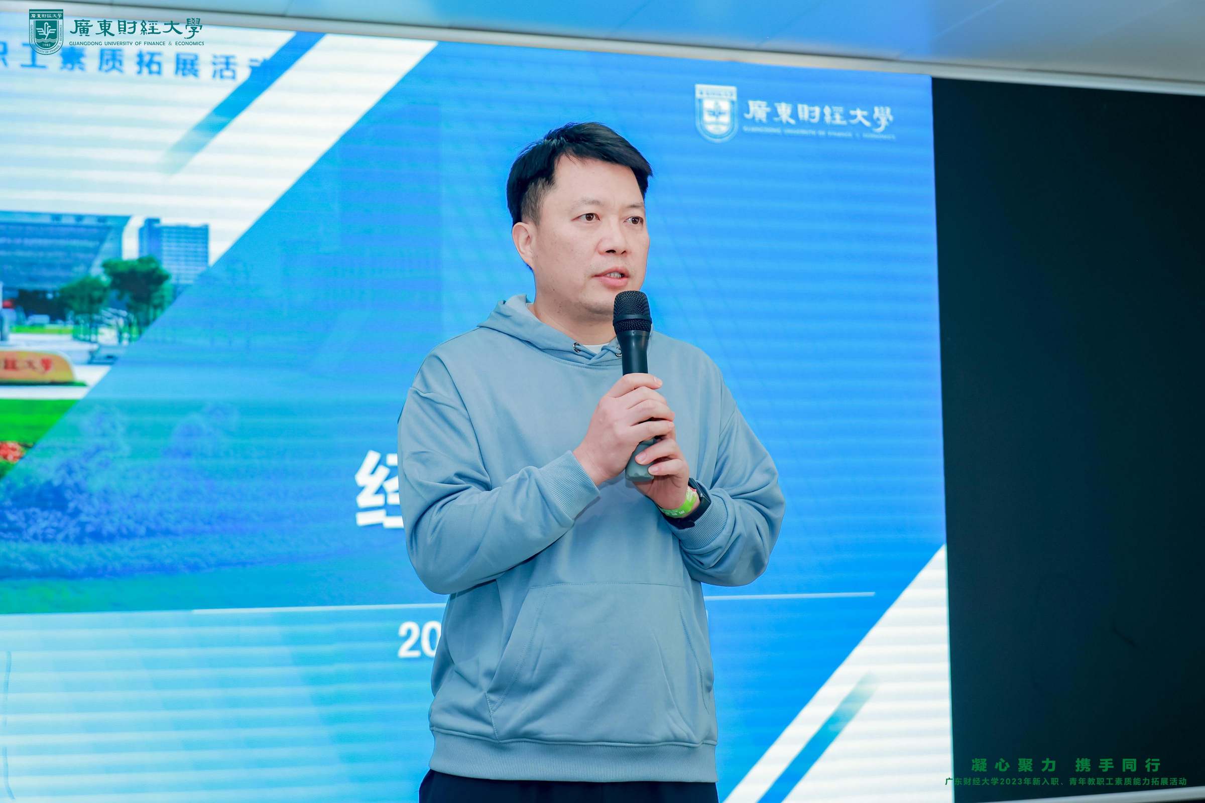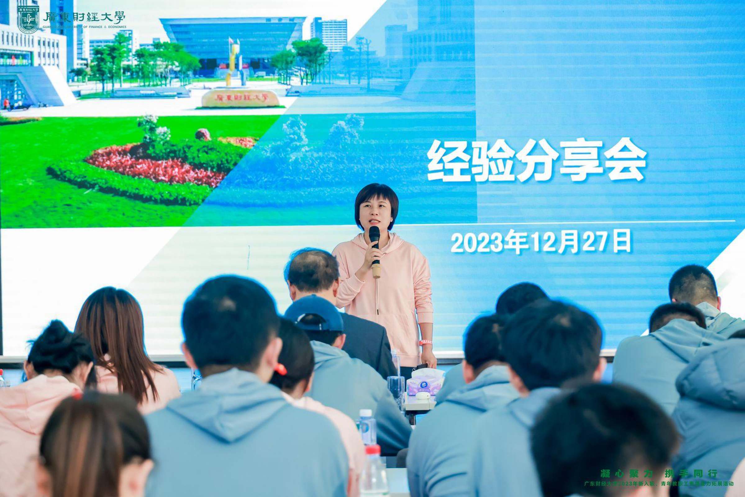 在资深教职工经验分享环节,孙占利和曾志辉分别作分享,廖凌杰主持。孙占利从教学、科研、社会服务“三个难题”入手,结合亲身实例,分享了自己与广财共成长、同发展的感人故事。曾志辉从“一颗感恩之心”“两个奋斗目标”“三个方面”“四个关键词”等方面,详细、动情地讲述了自己砥砺奋进的心路历程。陈红丽从建会历史、现任专职干部、主要工作和特色活动等方面介绍了学校工会。她对教职工提出三点希望。一是希望大家在广东财经大学成就人生梦想。二是希望大家都能拥有一个健康的身体、一份有成的事业、一个幸福的家庭。三是希望大家多多参与工会活动,积极融入广财大家庭,为学校的发展建设积极贡献力量。干货满满的经验分享让现场的新入职教职工和青年教职工获益良多。
