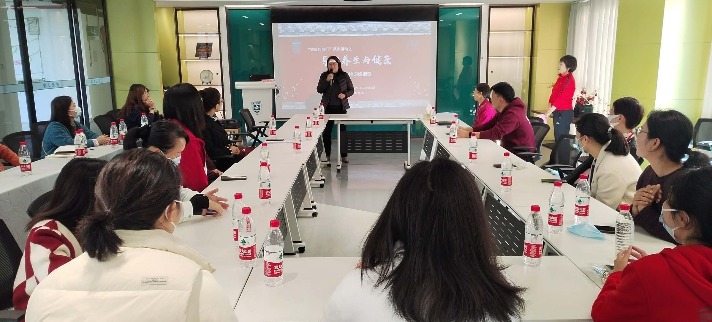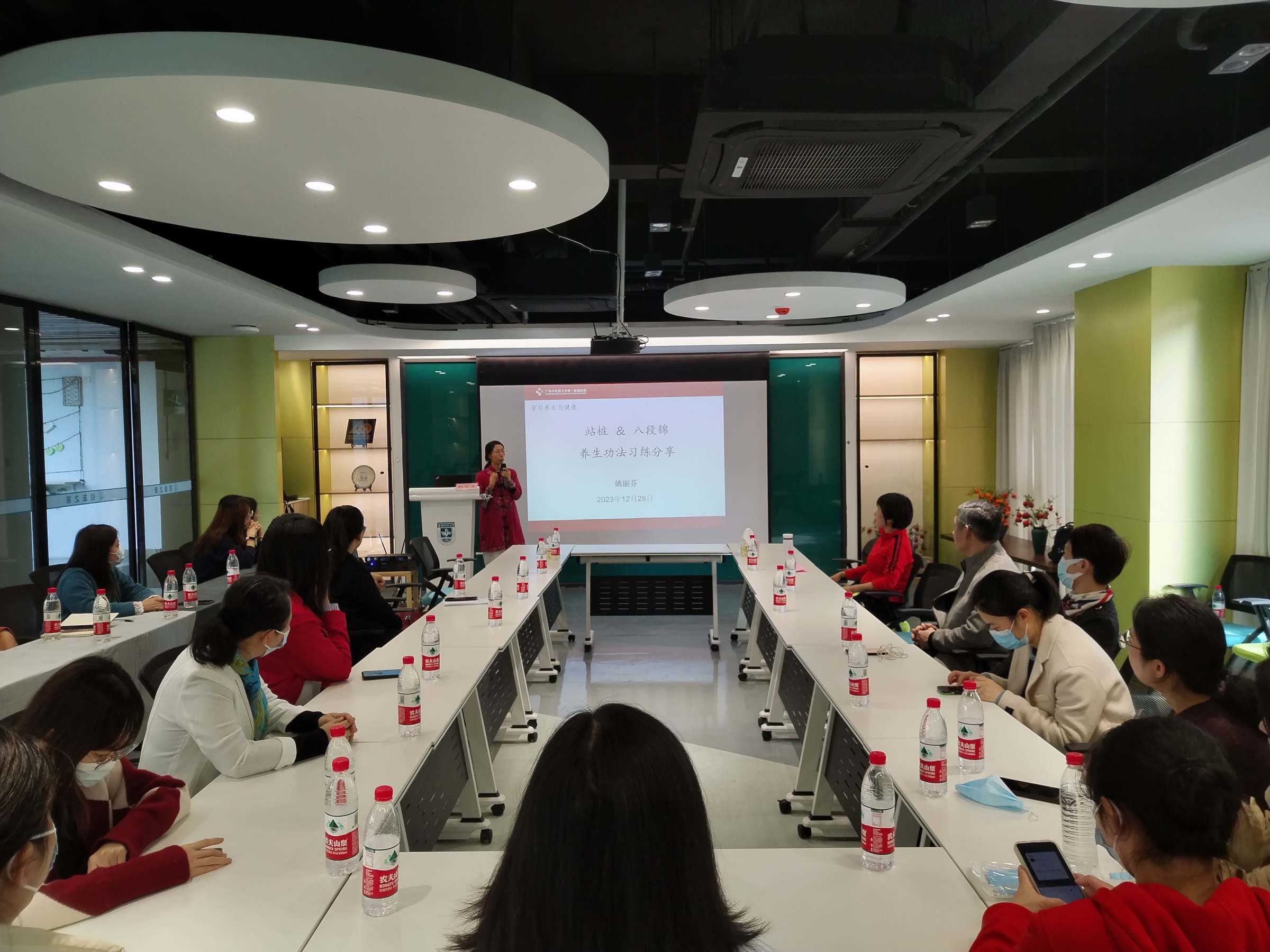 习近平总书记强调:“推进健康中国建设,是我们党对人民的郑重承诺。各级党委和政府要把这项重大民心工程摆上重要日程,强化责任担当,狠抓推动落实。”12月28日,由机关党委主办、校工会党支部承办的“健康伴我行”系列活动之导引养生与健康讲座在广州校区“校友之家”举行。机关党委专职副书记陈丽清,机关党委党员干部40余人参加。校工会党支部书记、校工会常务副主席陈红丽主持讲座。