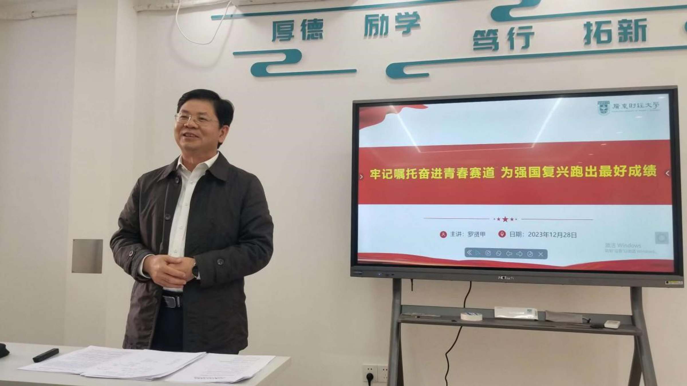 首先,罗贤甲带大家深刻领悟了习近平总书记对青年的殷殷嘱托。他指出,青年在习近平总书记心中占据着重要位置,全党把青年工作作为战略性工作来抓。他梳理了习近平总书记系列重要讲话中对青年的殷殷嘱托,鼓励同学们要牢记习近平总书记饱含深情的嘱托和期望,要有积极向上的精神状态和优良的综合素质,争做实现中华民族伟大复兴的先锋力量。
