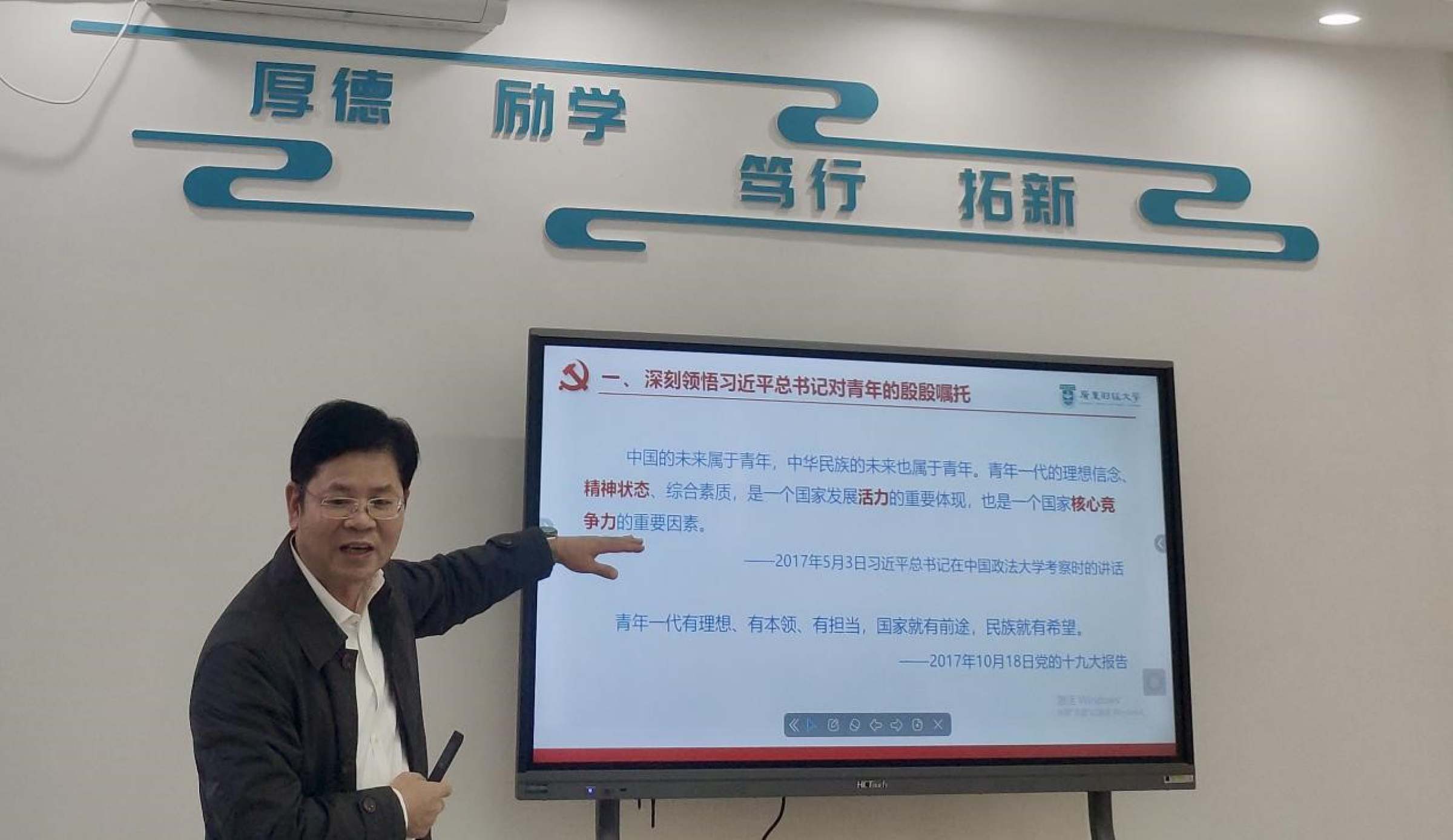 12月28日,校党委副书记罗贤甲到玉兰苑社区讲授题为“牢记嘱托奋进青春赛道 为强国复兴跑出最好成绩”的思政课,艺术与设计学院党委副书记林强、外国语学院党委副书记张琦、外国语学院本科生党支部书记郑冬瑜,外国语学院、艺术与设计学院的党员、入党积极分子以及团学骨干代表等参加思政课。