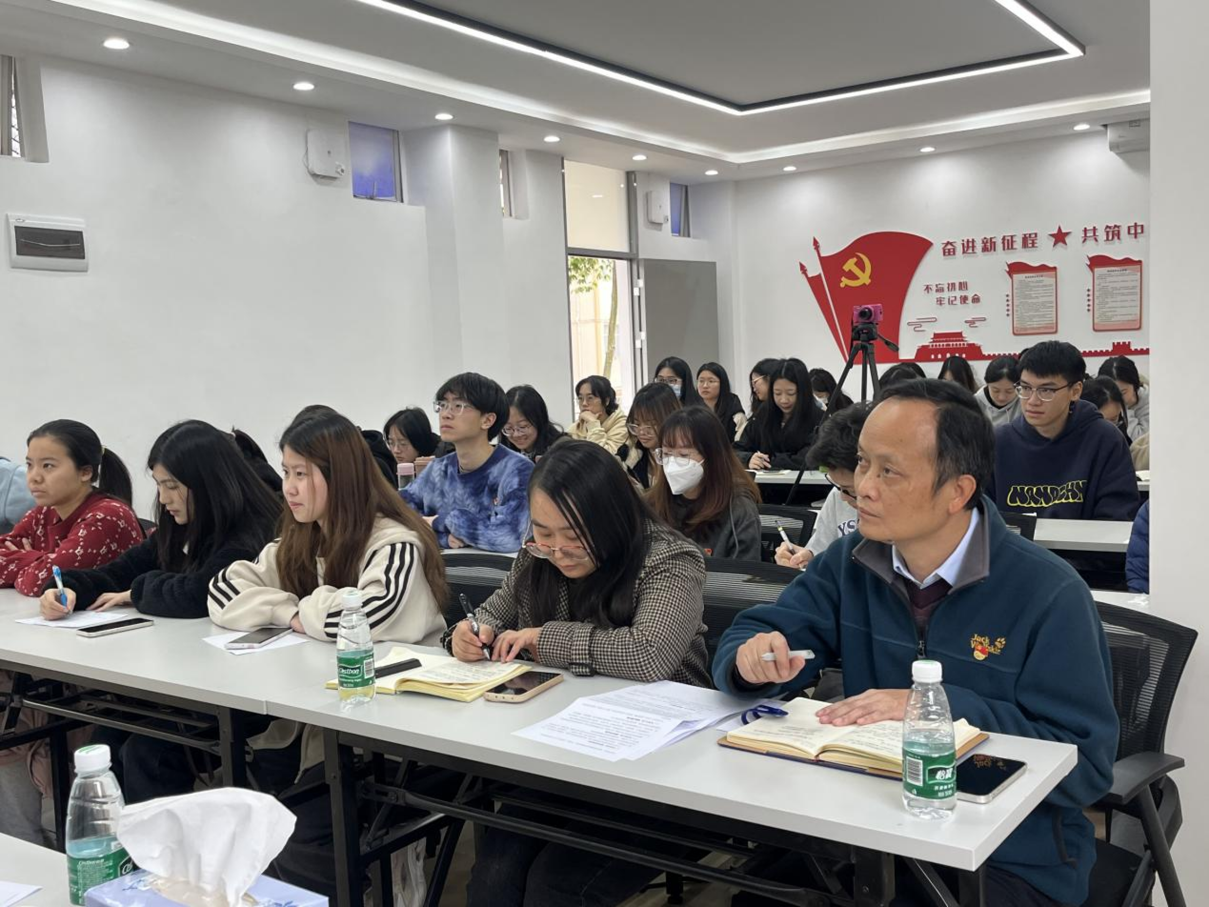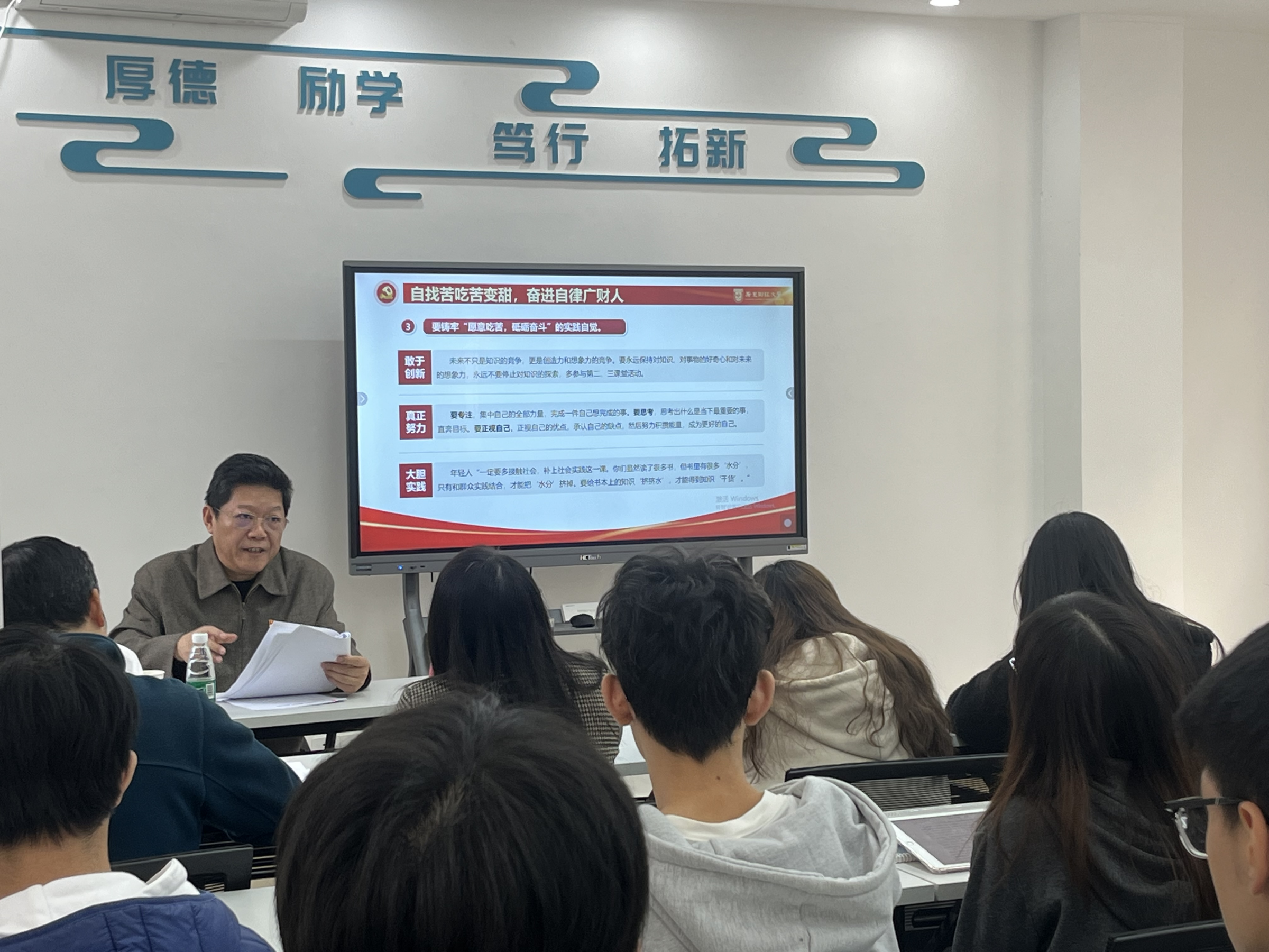 12月26日下午,学校党委副书记刘祖华在广州校区玉兰苑学生党员活动室为人文与传播学院、网络传播学院师生讲授“做新时代‘自找苦吃’的有为青年”思政课,人文与传播学院、网络传播学院(合署)党委副书记张传瑜、辅导员吴伟仪以及各学生党支部全体党员共50人聆听授课。