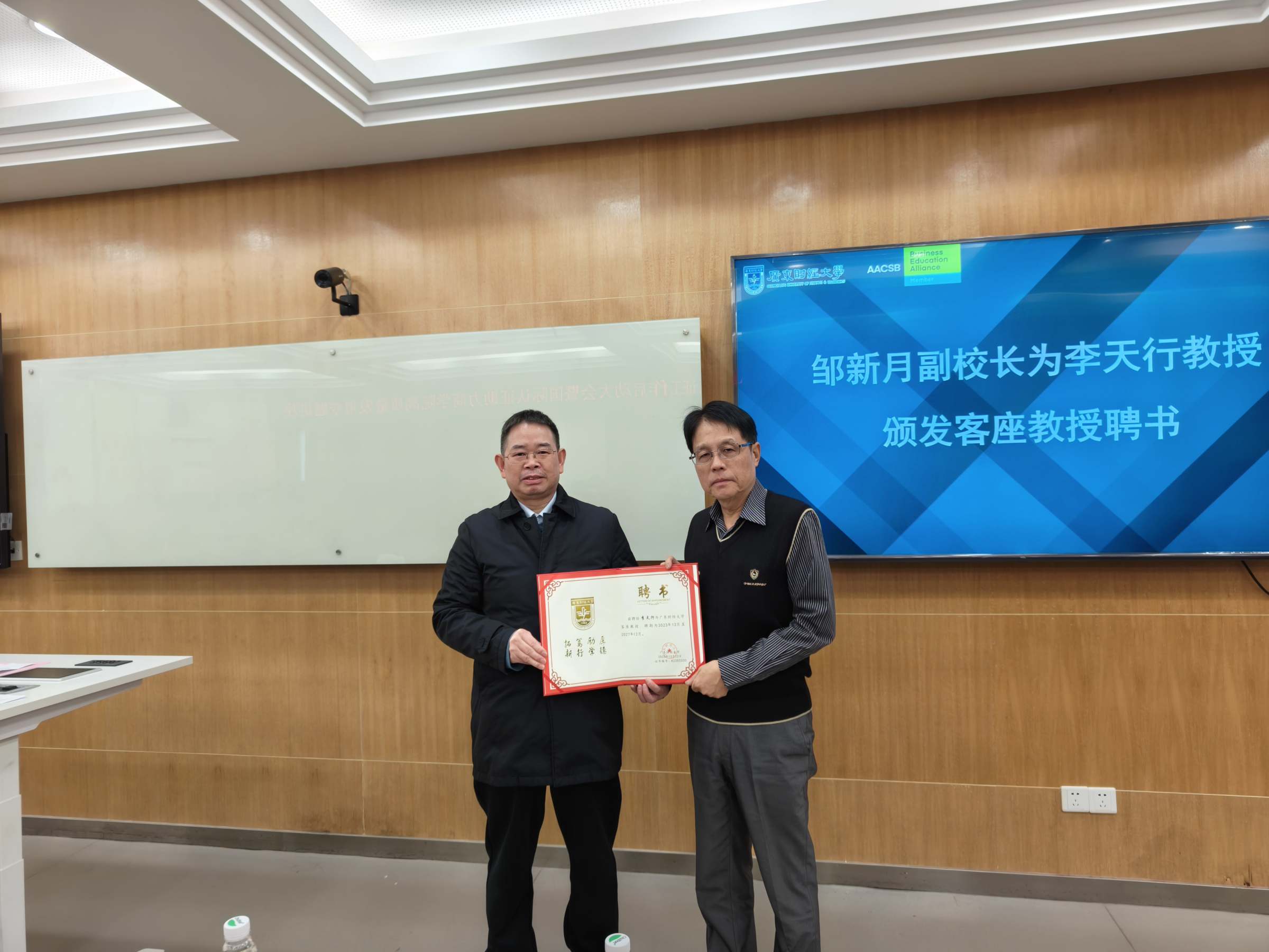 12月26日至27日,台湾辅仁大学终身特聘教授李天行来我校交流AACSB国际认证工作。李天行曾任台湾辅仁大学副校长和管理学院院长,在AACSB认证领域深耕多年,担任国内外多所商学院认证评审主席或委员。