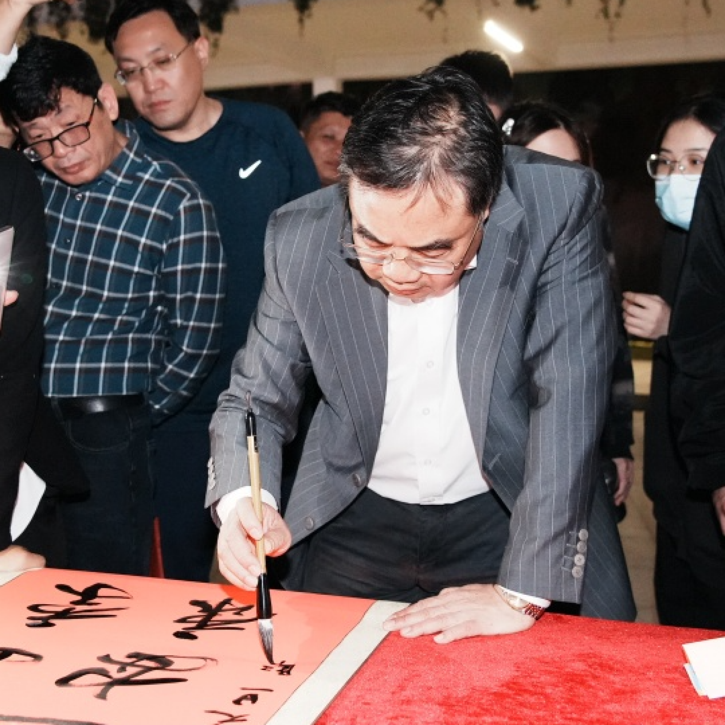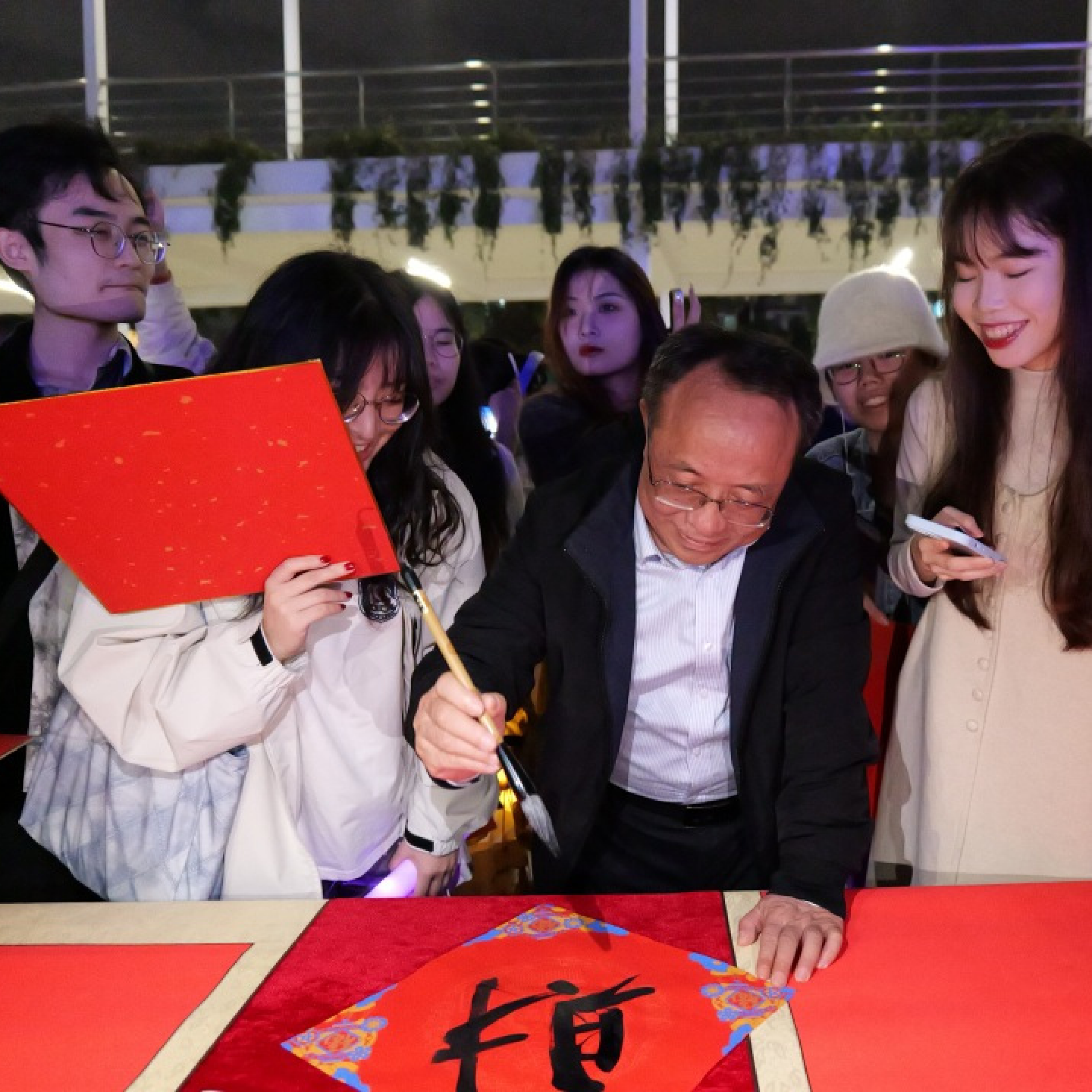 除了庄重的敲钟仪式之外,现场还有很多精彩的跨年活动。在新年到来之际在这欢欣雀跃的夜晚,书记、校长以及嘉宾和校友为新年题词祝贺,新桃旧符岁序更替,笔下生花华章日新!