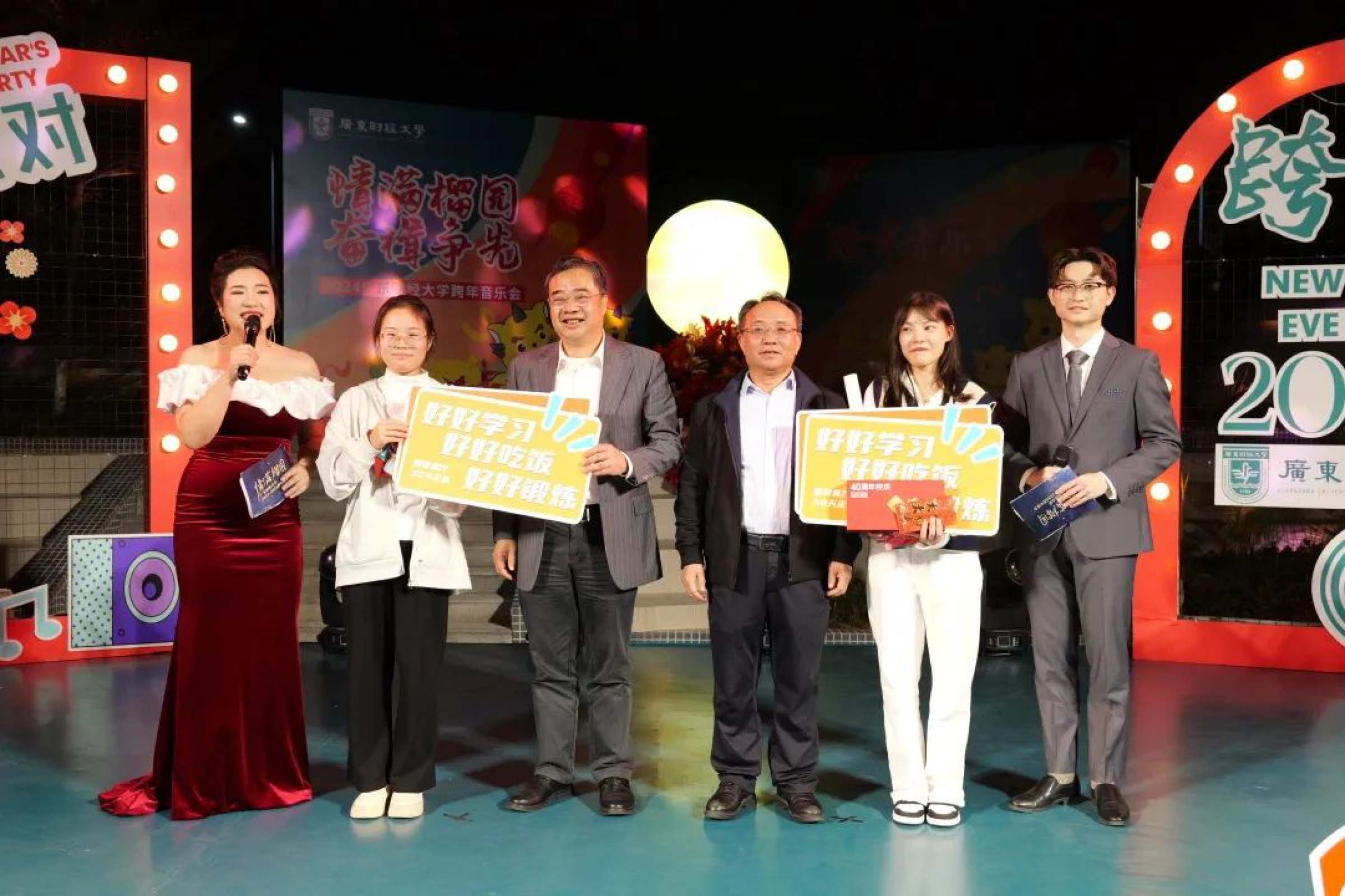 晚会期间呈现出了一首首经典的歌曲演唱。“广财的朋友们今天来相会,荡起小船儿暖风轻轻吹”。一首《广财的师生来相会》歌唱着80年代的活力邀请广财青年们共赴欢庆盛会。过往,我们仰望着满天的星光,现在,我们奔向炽热的向往。一首《出发吧!少年!》激励我们奔向山川湖海、千千万万!“就算翻风雨,只需睇到你似见阳光千万里”每当夜里出现星光,那就是你来了,一首经典粤语情歌唱出了学生时代的婉转深情!从“我家有个小九妹”到“珠江两岸歌声起,万艇千帆,载荔枝”一腔跌宕婉转,引得观众沉醉,从才子佳人、江南灵秀的过往,到湾区人民的奋楫前行。曲终余音袅,赢得满堂彩!夜色斑斓,万家灯火广财儿女齐聚一堂,欢庆新春情满榴园“奋进奋进,为广财之崛起奋进奋进,为中华之辉煌”新春的钟响与歌声相伴唱响了广财青年的欢庆与自豪!