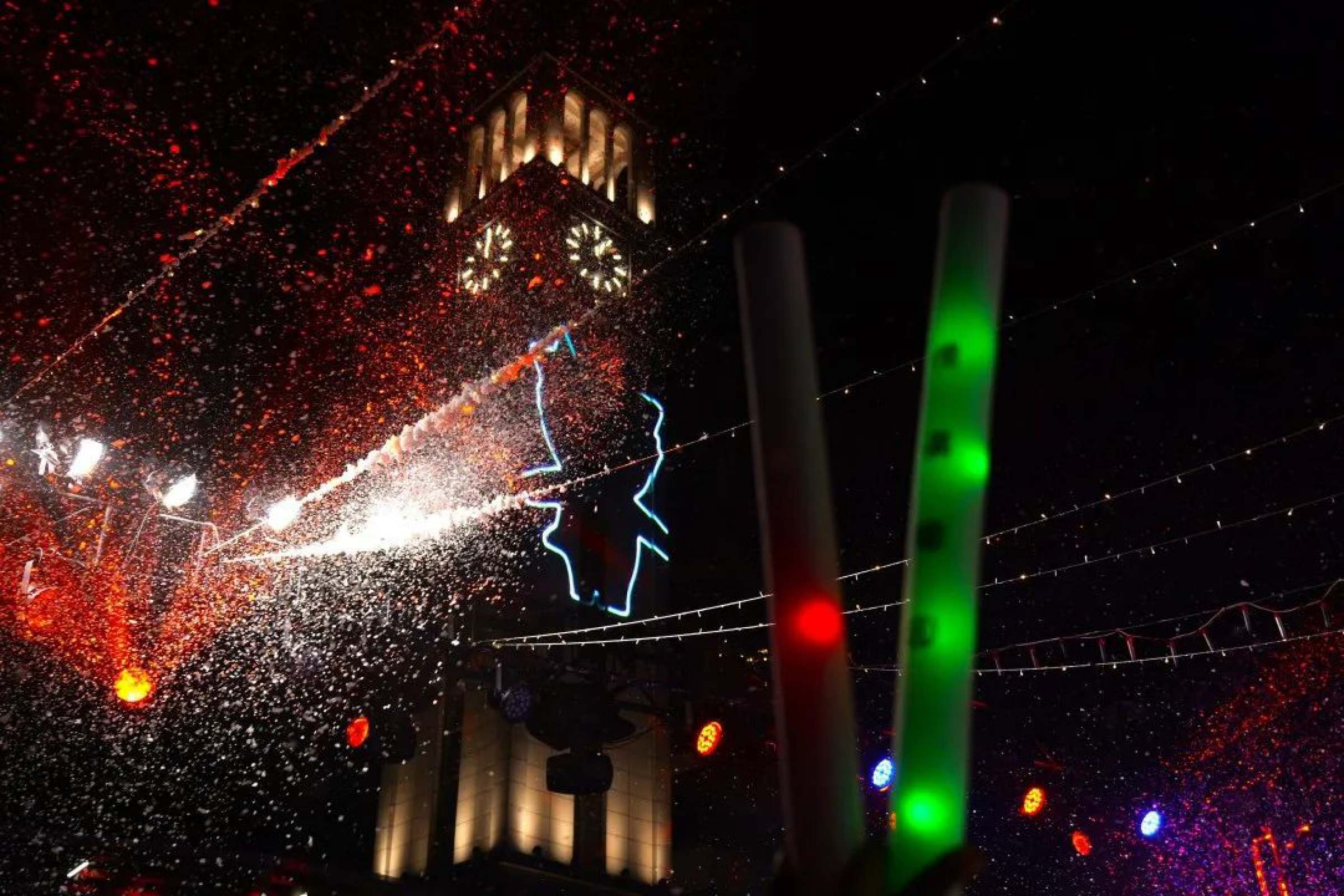 今年,对于全体广财人来说都是特别的一年,我们聚在一起,共同庆祝新年的到来。灯明如昼,烟火喧闹,全体广财人都沐浴在喜悦的钟声中。钟声涤荡心灵,钟声叩响未来,钟声如号角,召唤广财人在未来的道路上继续奋进自律、砥砺前行。“在学校里听到新年的钟声,很振奋,新的一年我要好好努力,多多进步”来自经济学院的王同学说。校园的新年钟声像是冲锋的号角,激励着广财师生在未来的365个日夜接续奋进自律、笃行不怠。