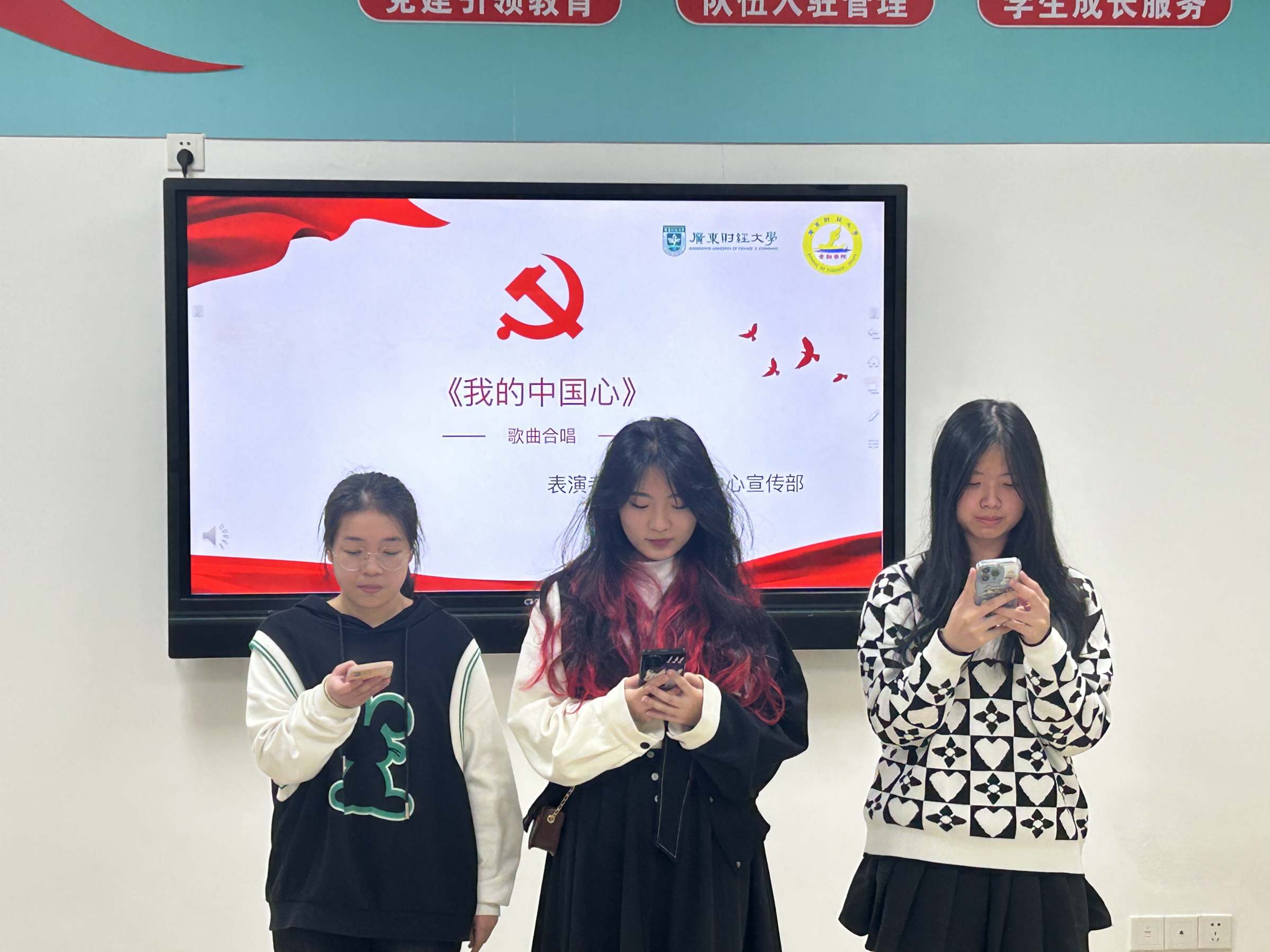 金融学院党建服务中心的同学朗诵《七一》、合唱《倔强》、演唱《我相信》《我和我的中国心》等节目。大家在欢声笑语中增强了党性,加深了友谊,集体凝聚力和向心力也得到了增强。