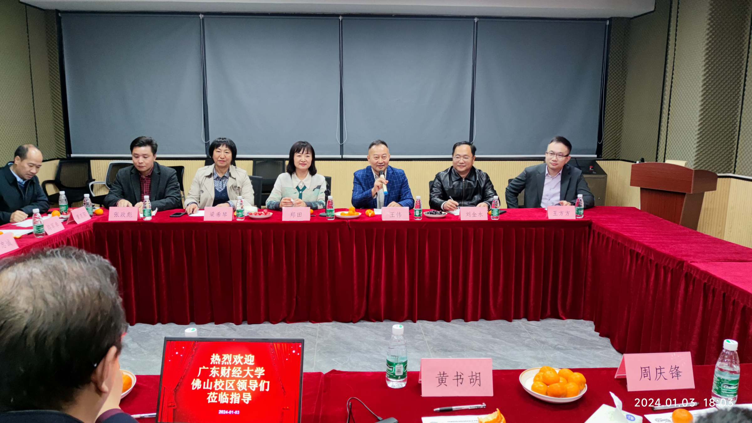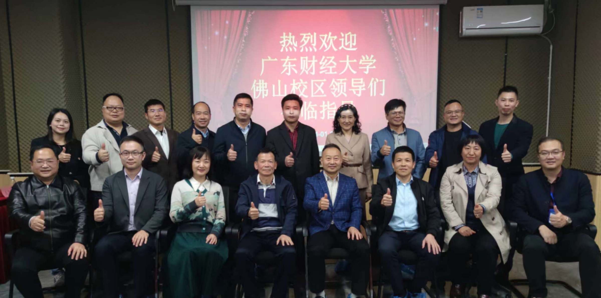 1月3日下午, 佛山校区党委书记王伟等一行13人调研走访广财佛山校友会,佛山校区管委会(省市共建办)班子及各办负责人、5个全学段学院负责人代表等参加了交流活动。