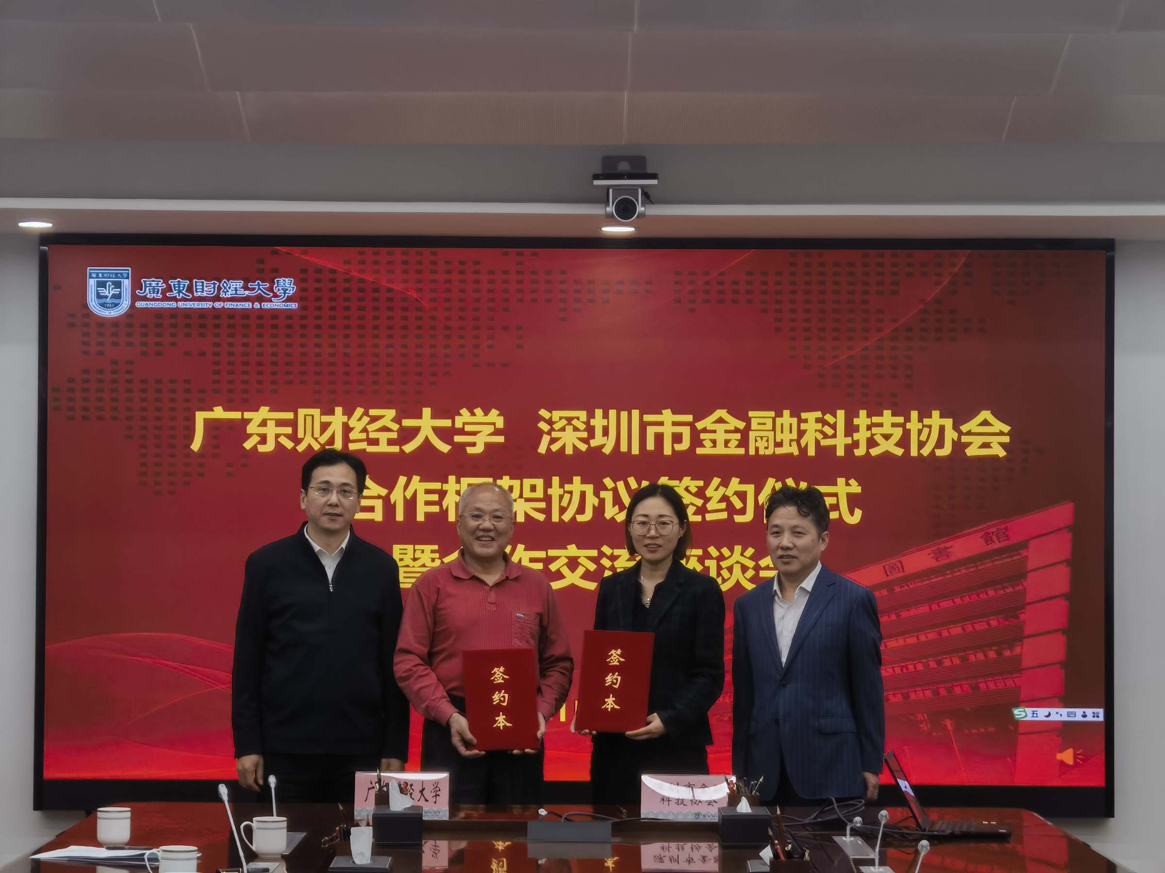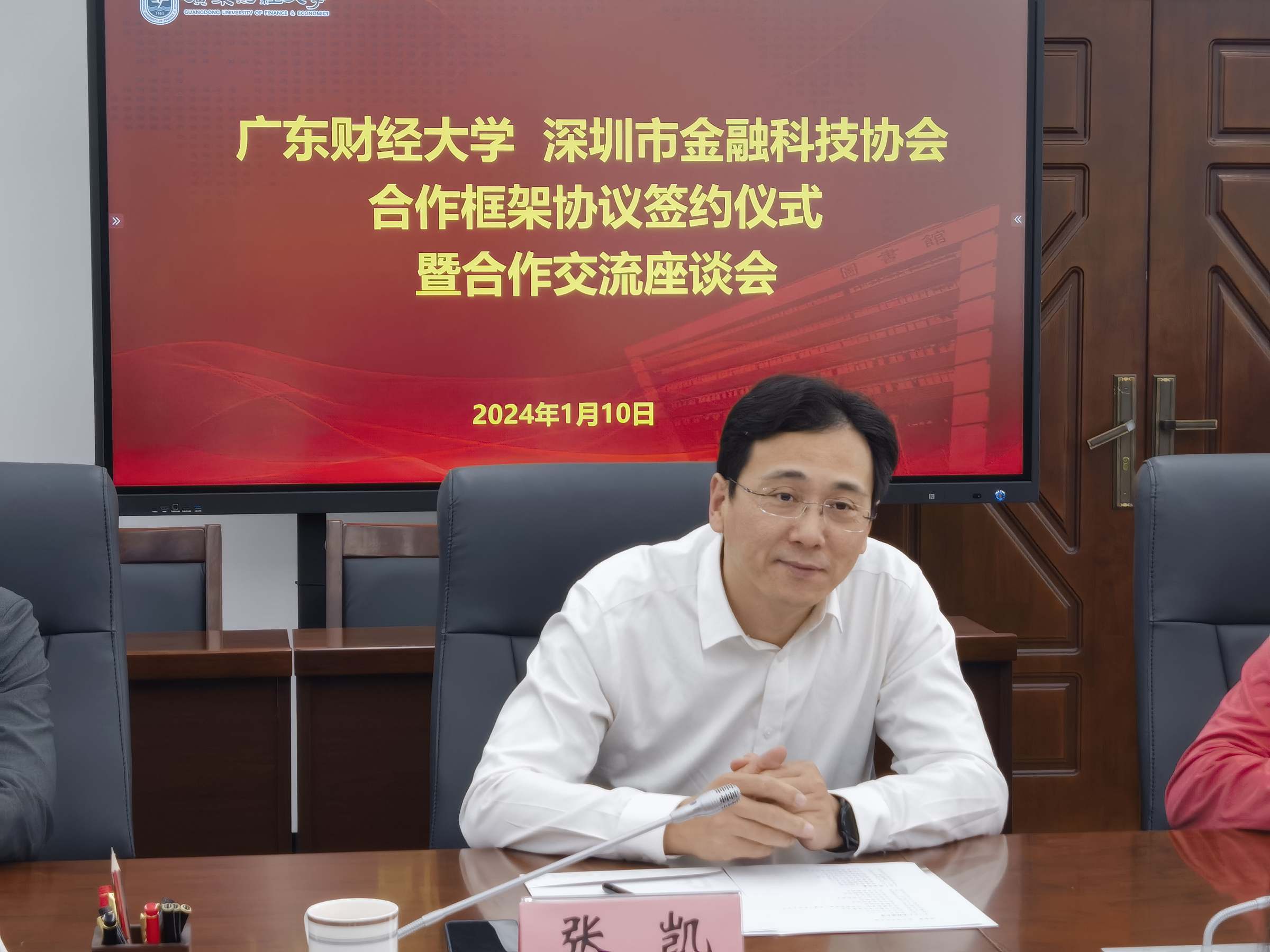 1月10日,我校举行了与深圳市金融科技协会合作框架协议签约仪式暨合作交流座谈会。副校长张凯,深圳市金融科技协会执行副会长李绅、园区运营部副总监兼深港澳金融科技师品牌总监辛慕榕等出席了仪式。