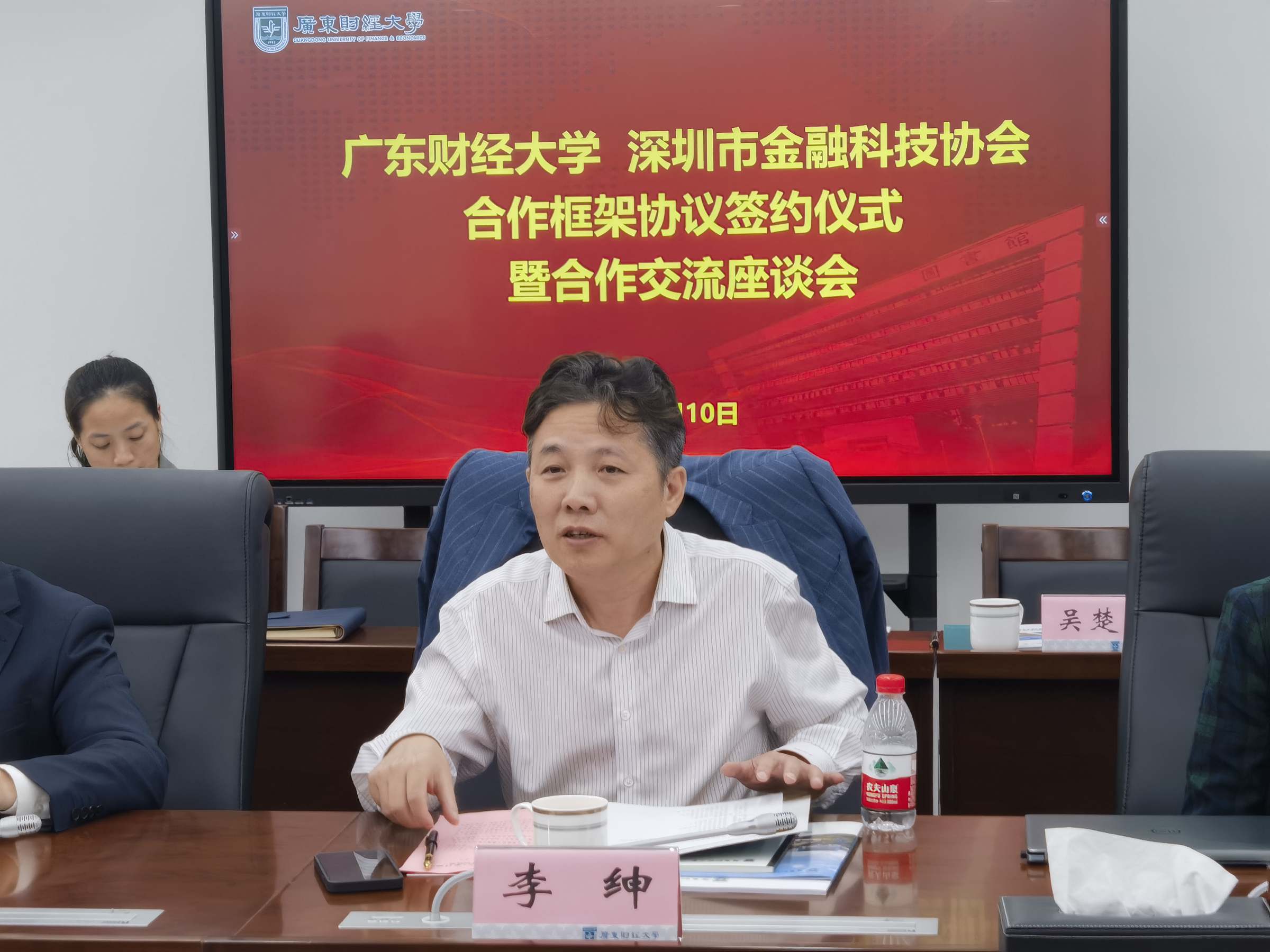 张凯向参加签约仪式和座谈会的领导和嘉宾表示热烈欢迎,并介绍了学校发展历史以及办学特色,他强调,广东财经大学一直致力于探索交叉学科复合型人才培养模式,打造“湾区融合、商法融合、商技融合、产教融合、双创融合”模式,加快建设成为大湾区一流的财经大学。广财将拥抱湾区,服务湾区,抓住契机加强与行业组织合作,希望校协双方能借助优质平台,充分发挥资源、人才、技术和协同创新优势,促成产教研合作向纵深迈进,在高素质人才培养、学生实践以及创新创业等方面取得新成绩。