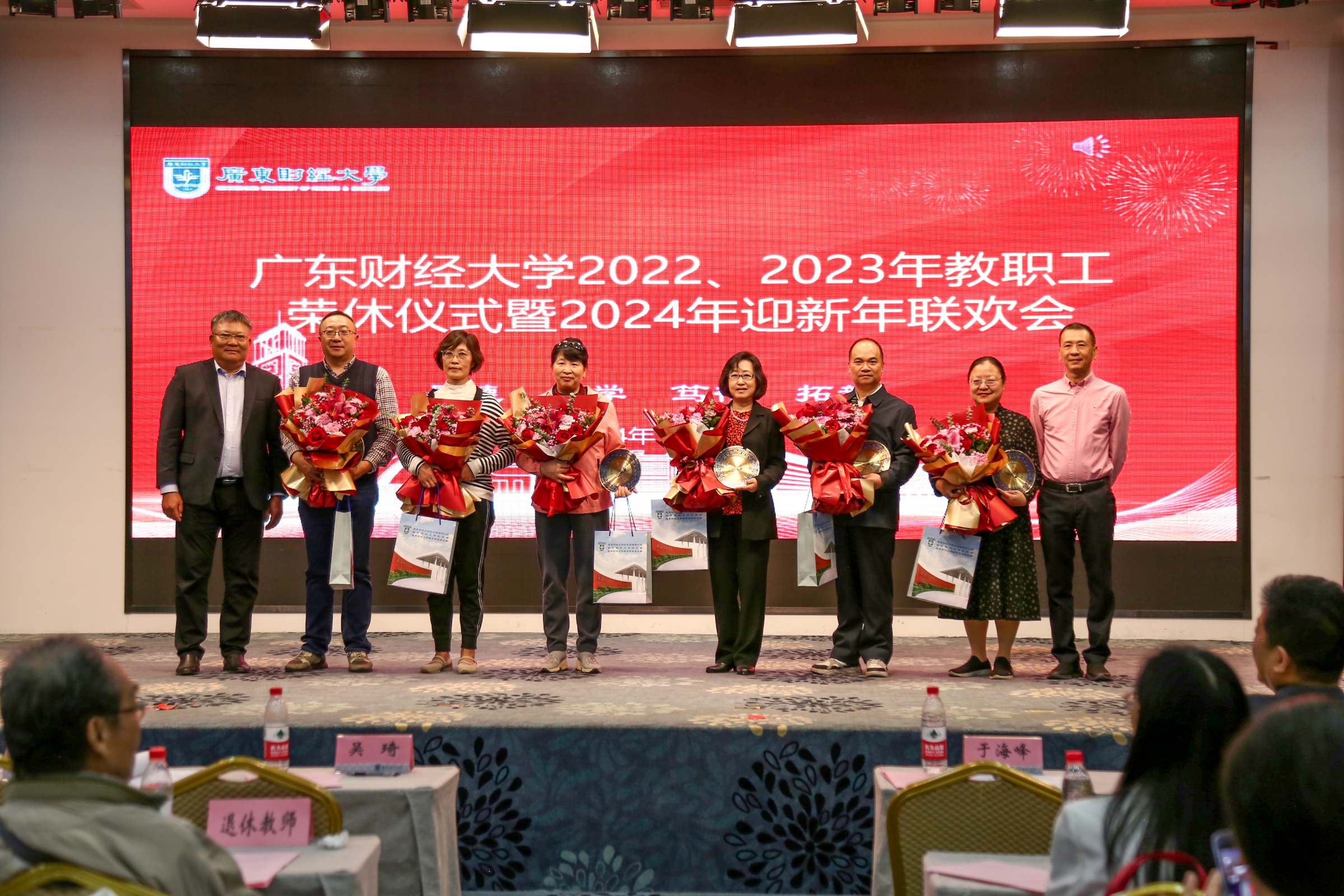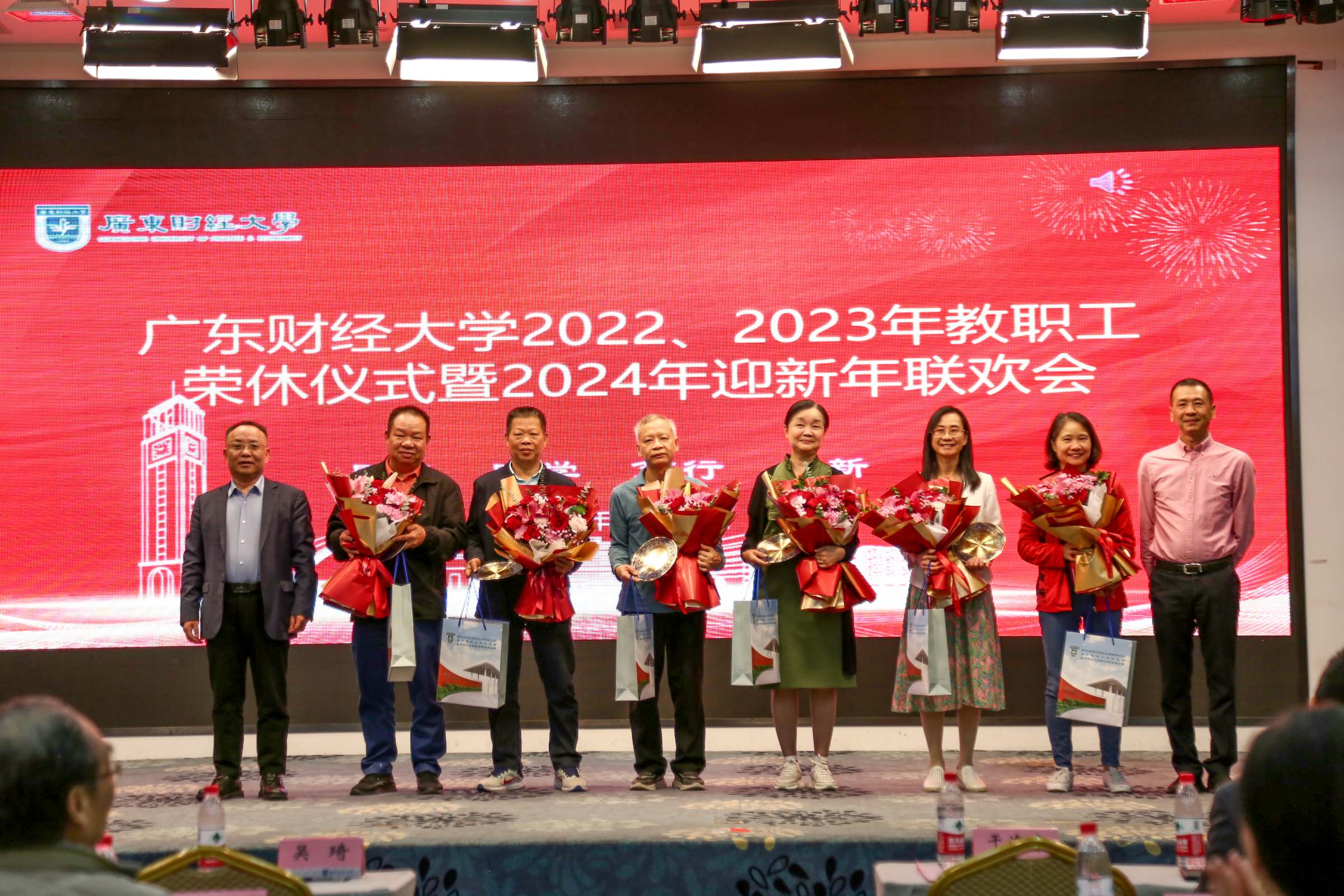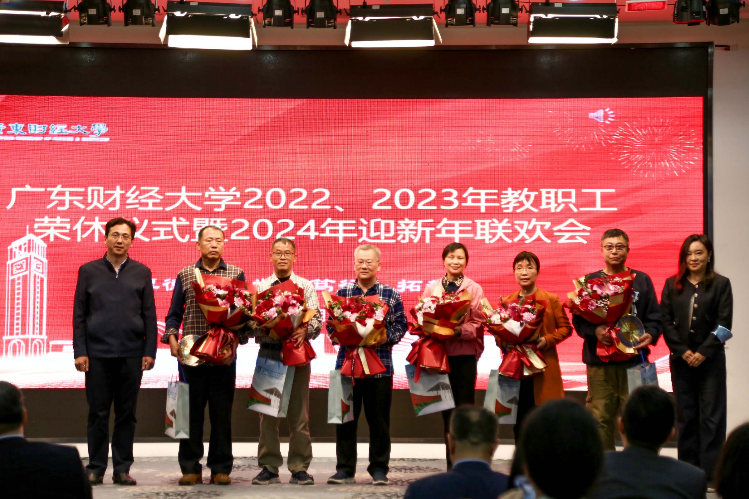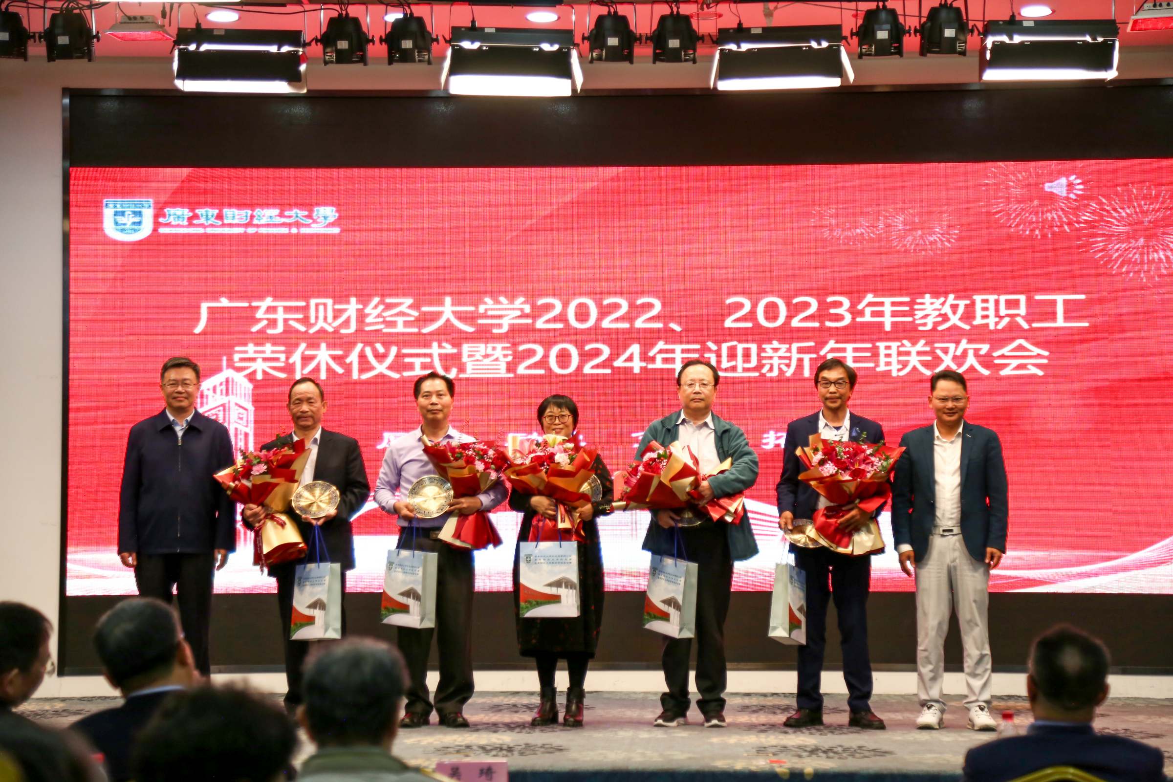 1月15日下午,我校举行2022、2023年教职工荣休仪式暨2024年迎新年联欢会。校长于海峰、正校级干部吴琦、校党委副书记刘祖华、罗贤甲,副校长陈国栋、邹新月、张凯,纪委书记王志云,2022年、2023年荣休教职工,退休老同志,党办校办、组织部、宣传部、人力资源处、离退休教工党总支、校工会、校友办、荣休教职工所在单位负责同志、校友代表、新进教职工代表参加仪式。荣休仪式由罗贤甲主持。