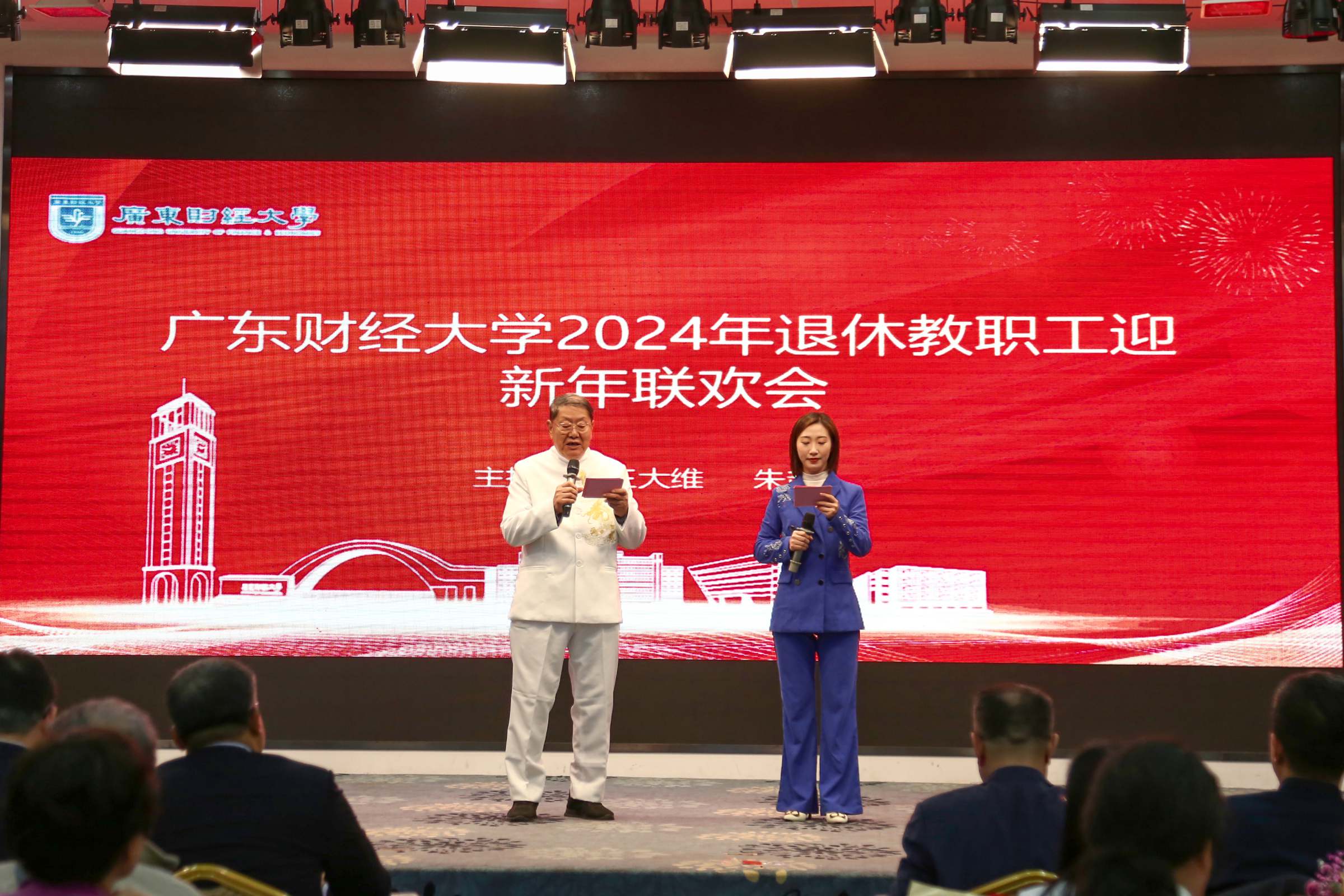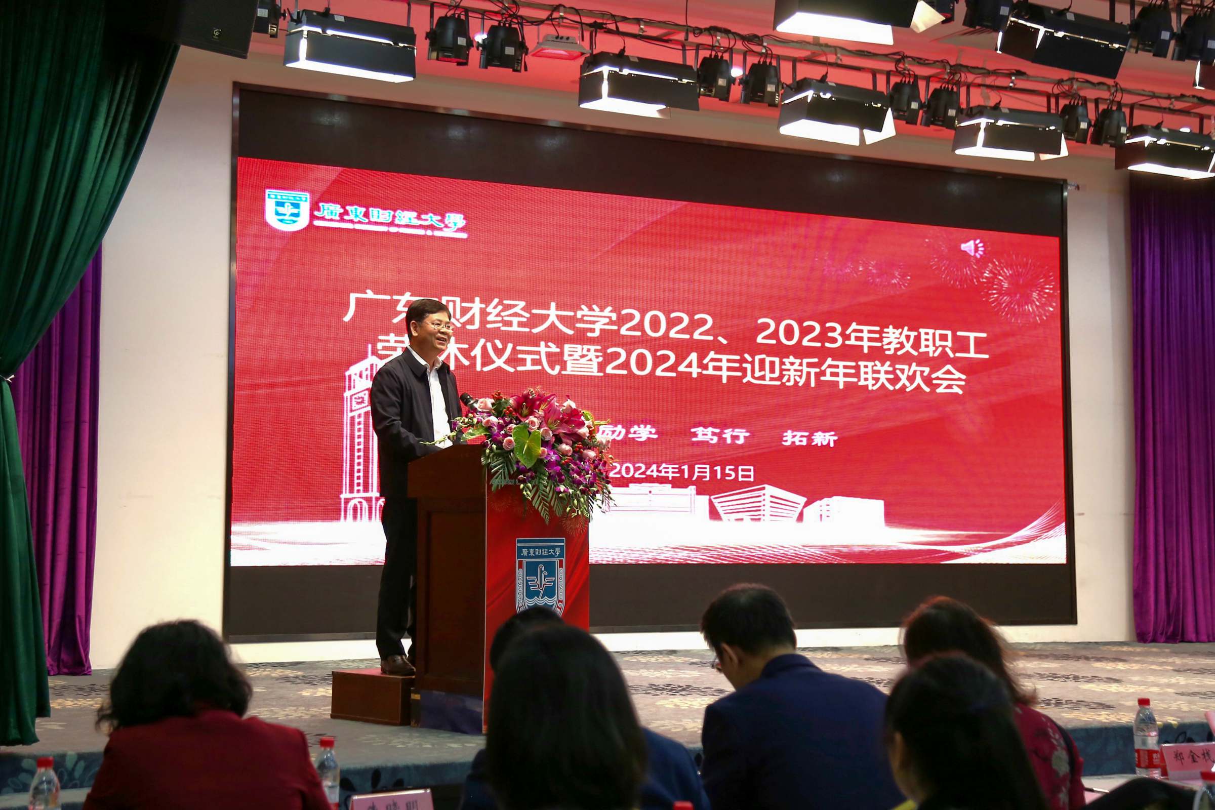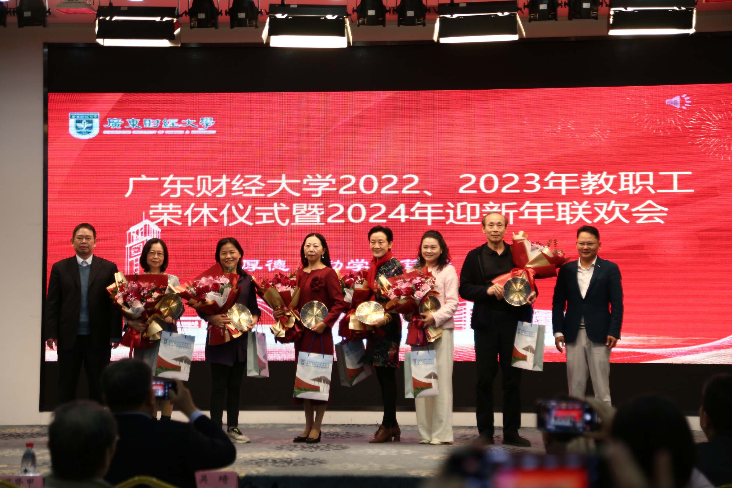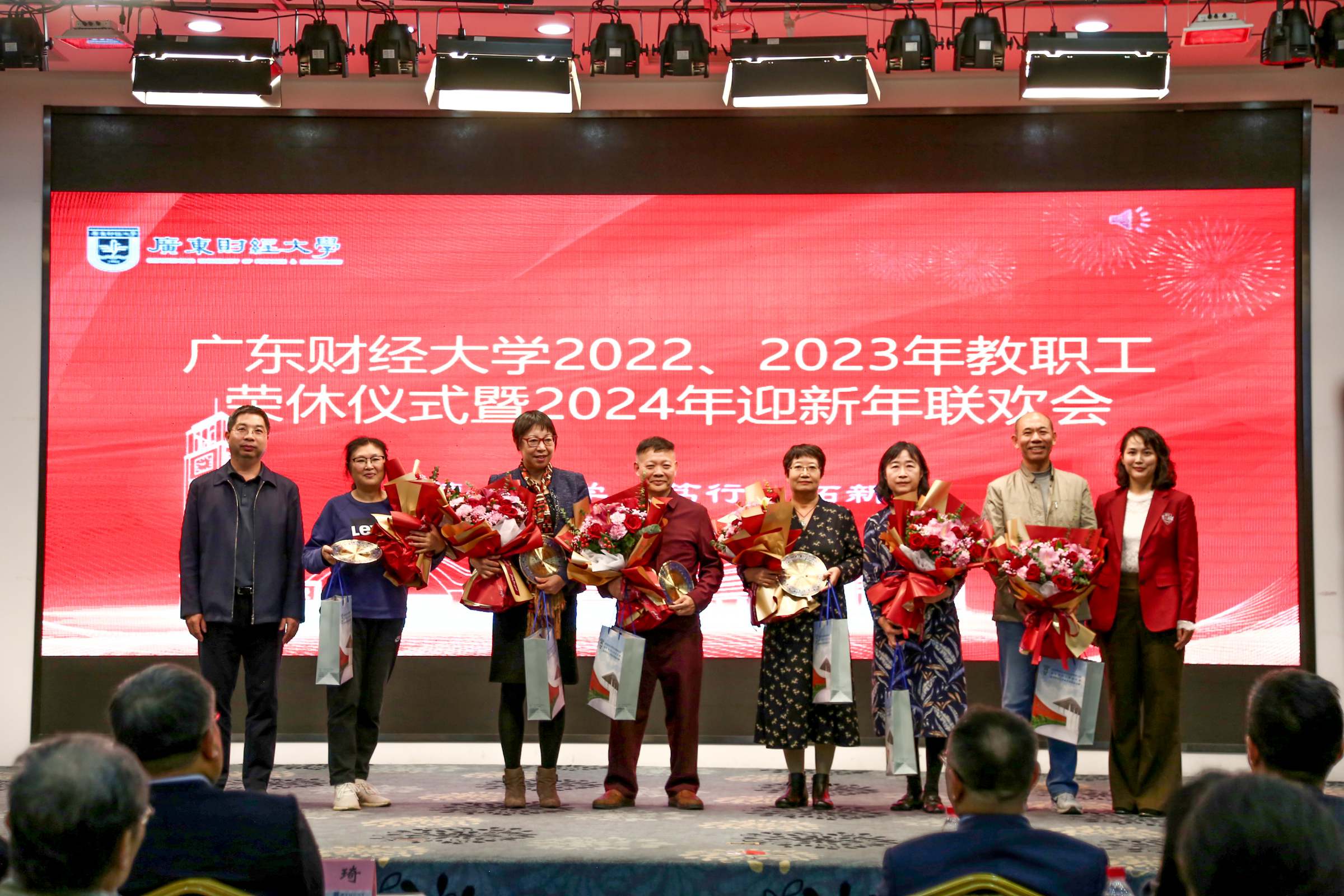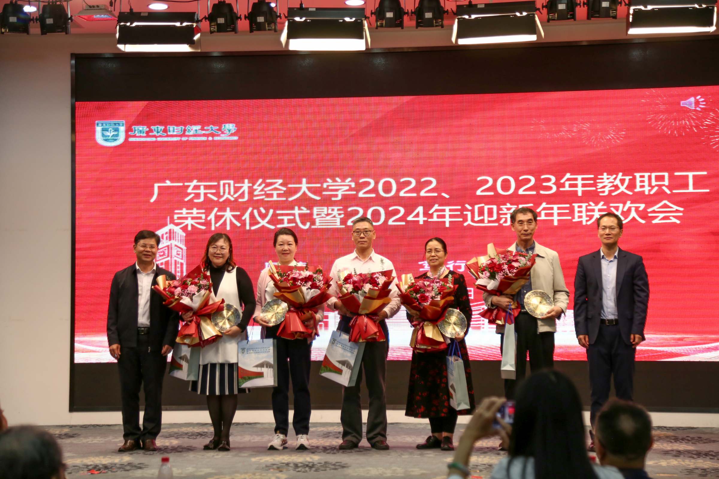 1月15日下午,我校举行2022、2023年教职工荣休仪式暨2024年迎新年联欢会。校长于海峰、正校级干部吴琦、校党委副书记刘祖华、罗贤甲,副校长陈国栋、邹新月、张凯,纪委书记王志云,2022年、2023年荣休教职工,退休老同志,党办校办、组织部、宣传部、人力资源处、离退休教工党总支、校工会、校友办、荣休教职工所在单位负责同志、校友代表、新进教职工代表参加仪式。荣休仪式由罗贤甲主持。