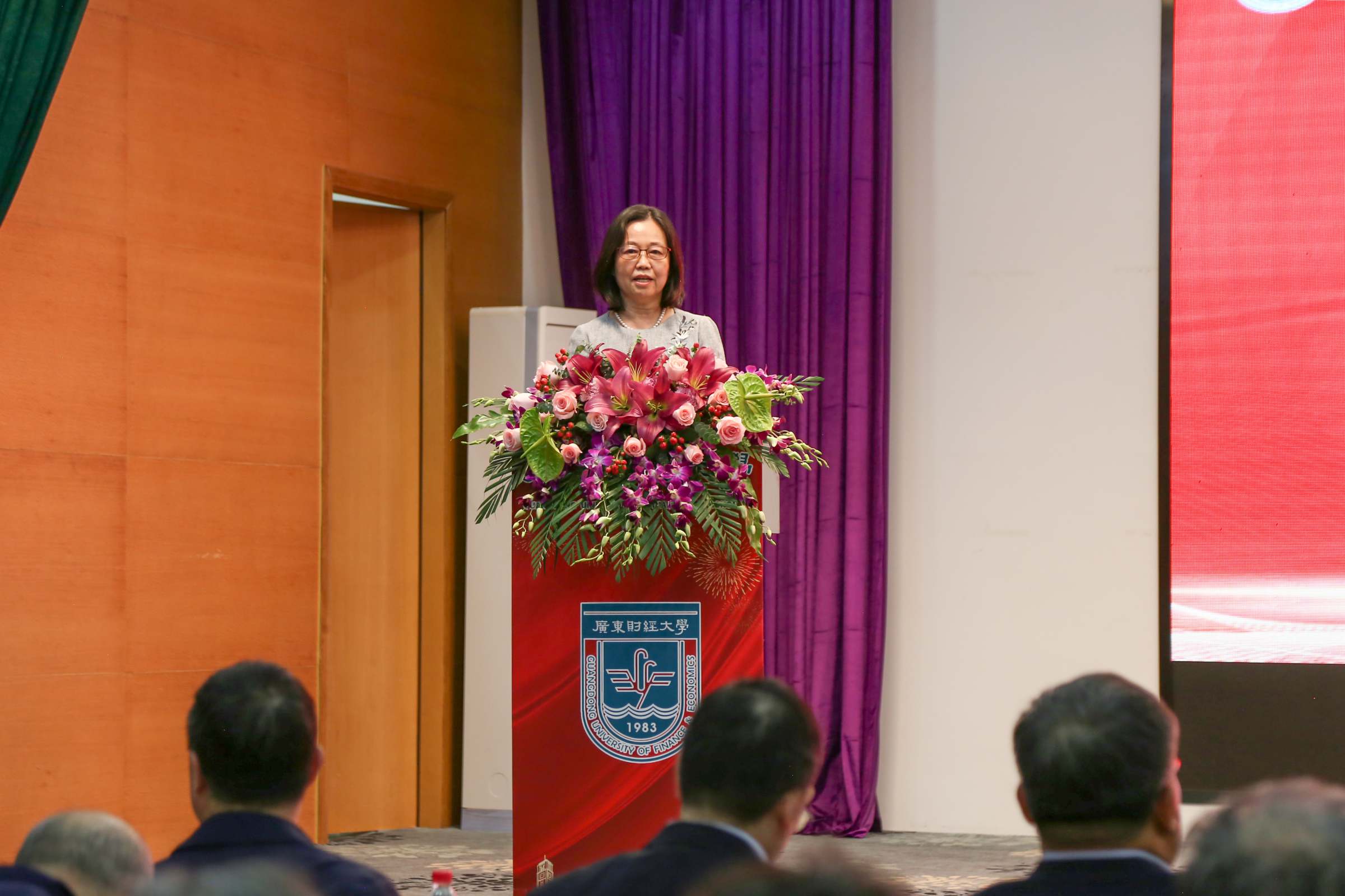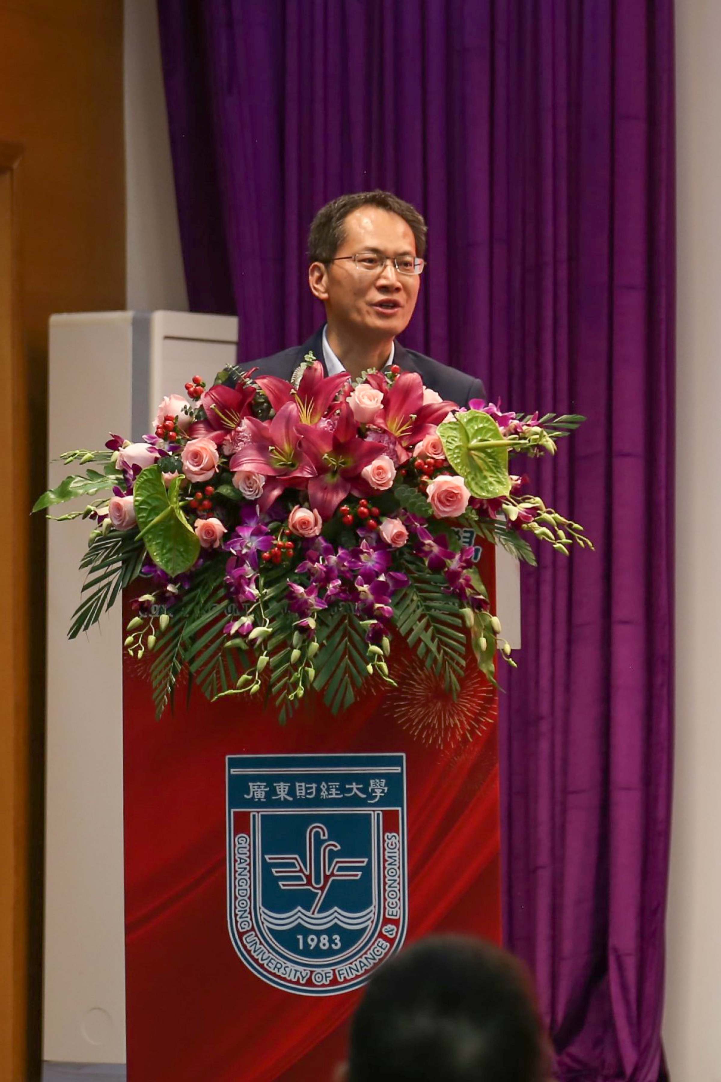 原经管实验中心主任车嘉丽教授代表荣休教职工发言,她感谢学校为退休教职工举办的荣休仪式。车嘉丽回顾了自己在学校从讲师到副教授、再到教授的28年工作历程,感谢学校给予的成长、成功的平台,她坚信在学校党委的坚强领导下,在包括离退休教工在内的全体广财人的共同努力下,定能建成大湾区一流财经大学。