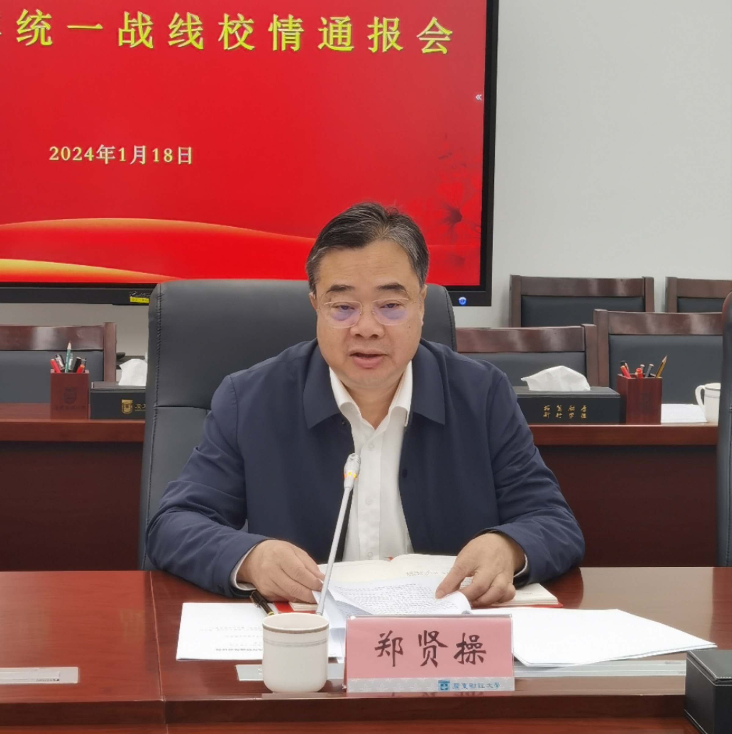 会上,郑贤操从党的建设、人才培养、学科专业建设、科研和社会服务成果、40周年校庆等方面对学校2023年的事业发展情况进行了全面详实的通报。他指出,2024年学校将始终以习近平新时代中国特色社会主义思想为指导,全面贯彻落实党的二十大精神,以党建事业双融双促为保证,以建设大湾区一流财经大学为目标,以新文科建设为引领、以推进落实“十四五”规划和“强特色”建设方案为主抓手,着力推动学校内涵式高质量发展迈上新台阶。