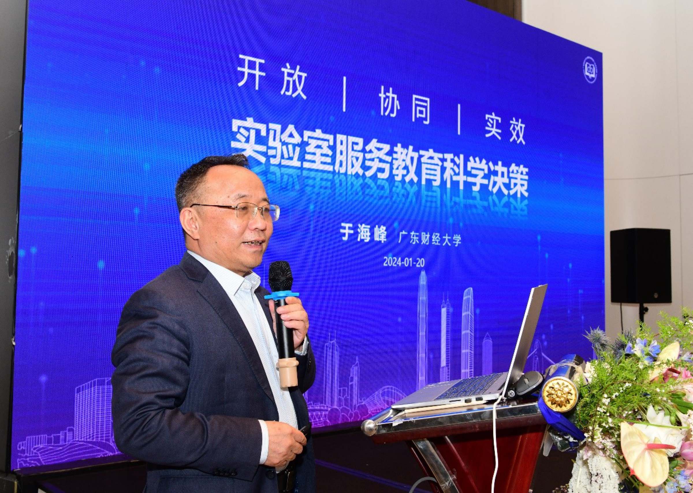 “广东地方实践”环节, 我校校长于海峰,副会长、广州市教育研究院党委委员林韶春,监事长、汕头大学党政办公室副主任、发展规划处副处长韩宝成,数字广东厅局服务三部教育组高级架构师张君兰分别作了题为“开放 协同 实效 实验室服务教育科学决策”“统计数据服务教育决策的广州探索”“新时代新征程地方高校服务教育科学决策的展望与思考”“演示广东省教育科学决策服务”等研究分享或报告。