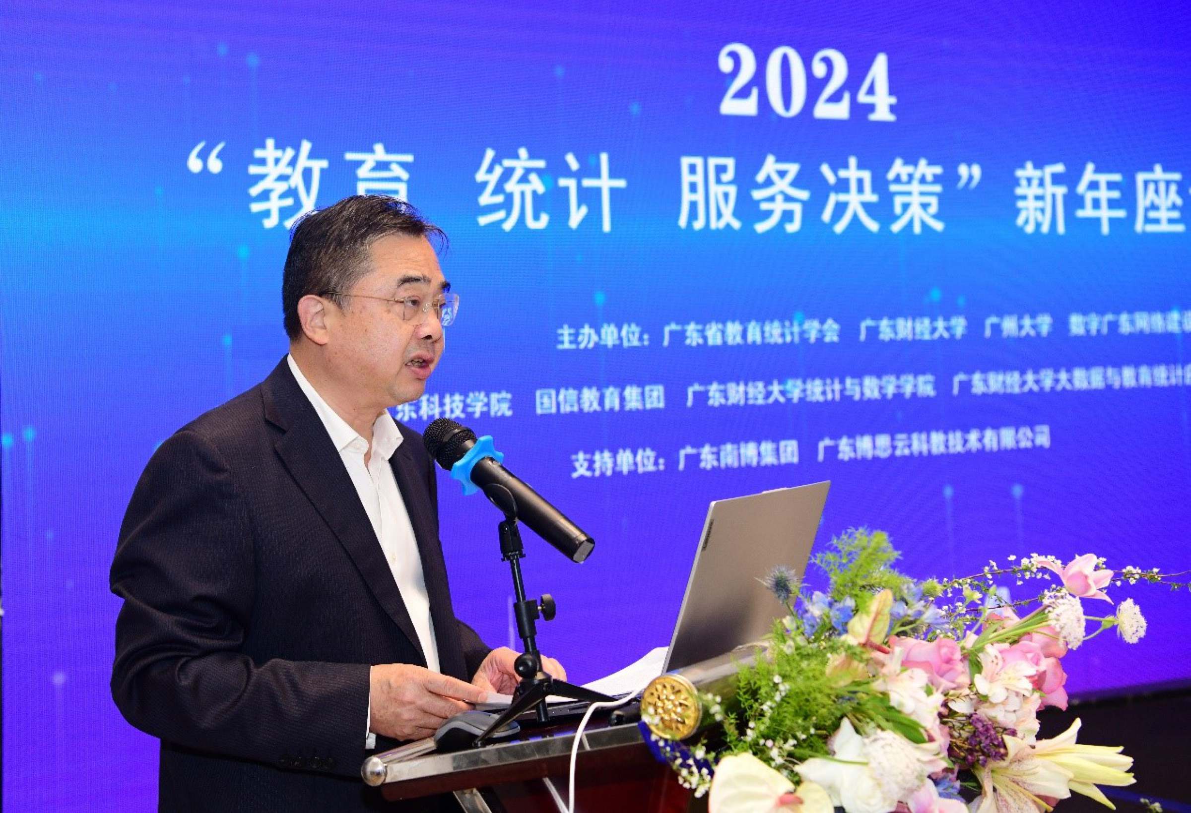 1月20日,2024“教育 统计 服务决策”新年座谈会在广州召开。会议以“服务教育科学决策,数据赋能高质量发展”为主题。会议锚定教育强国建设目标任务,就如何发挥统计监测评价职能,加强教育事业发展形势研判,充分运用数据发现问题、分析问题,提高统计监测的前瞻性预警性、政策建议的精准性有效性、统计监督的科学性权威性开展座谈。广东省教育统计学会会长、我校党委书记郑贤操出席会议并致辞。我校校长于海峰,广东省教育厅党组成员、副厅长邵允振出席会议并讲话。
