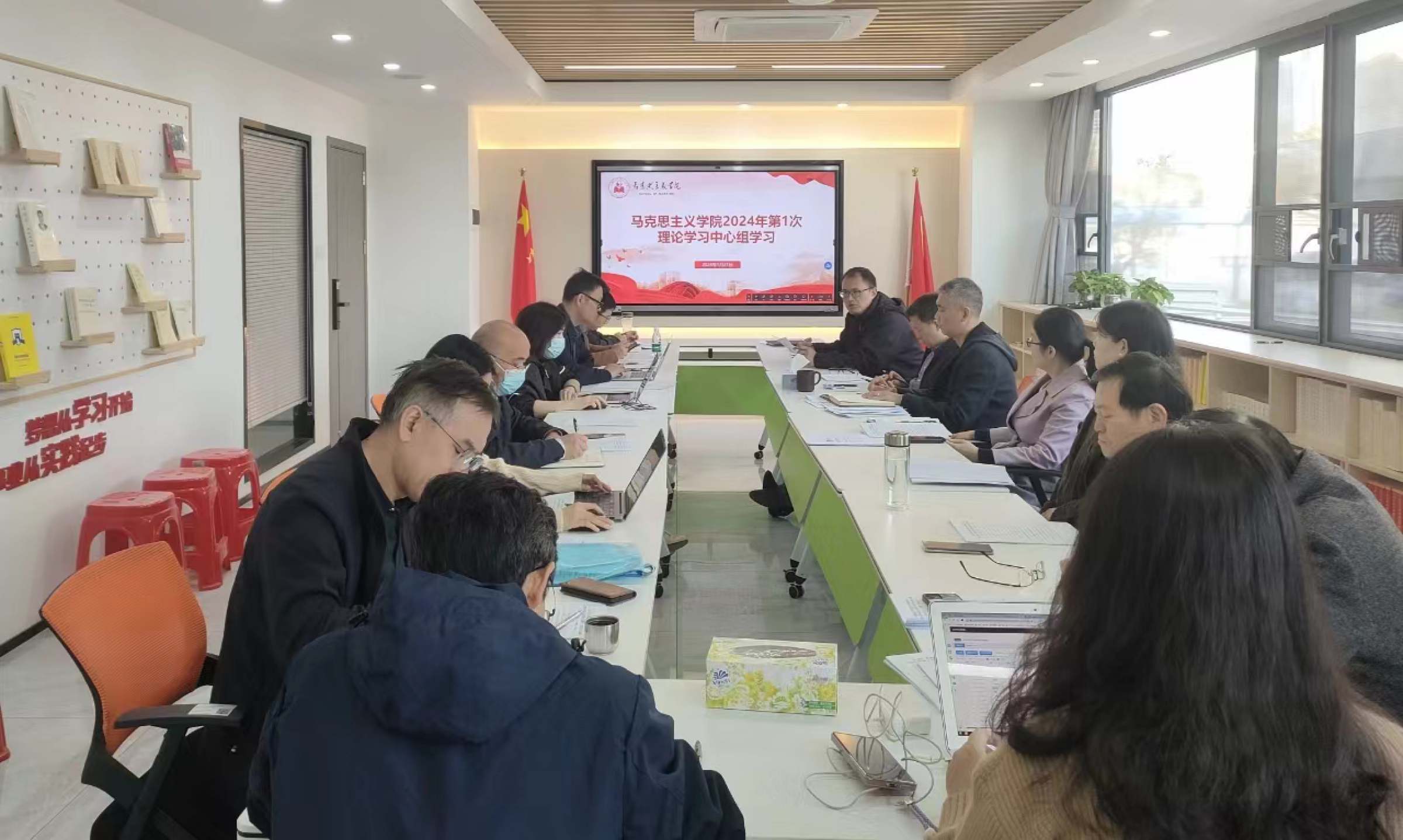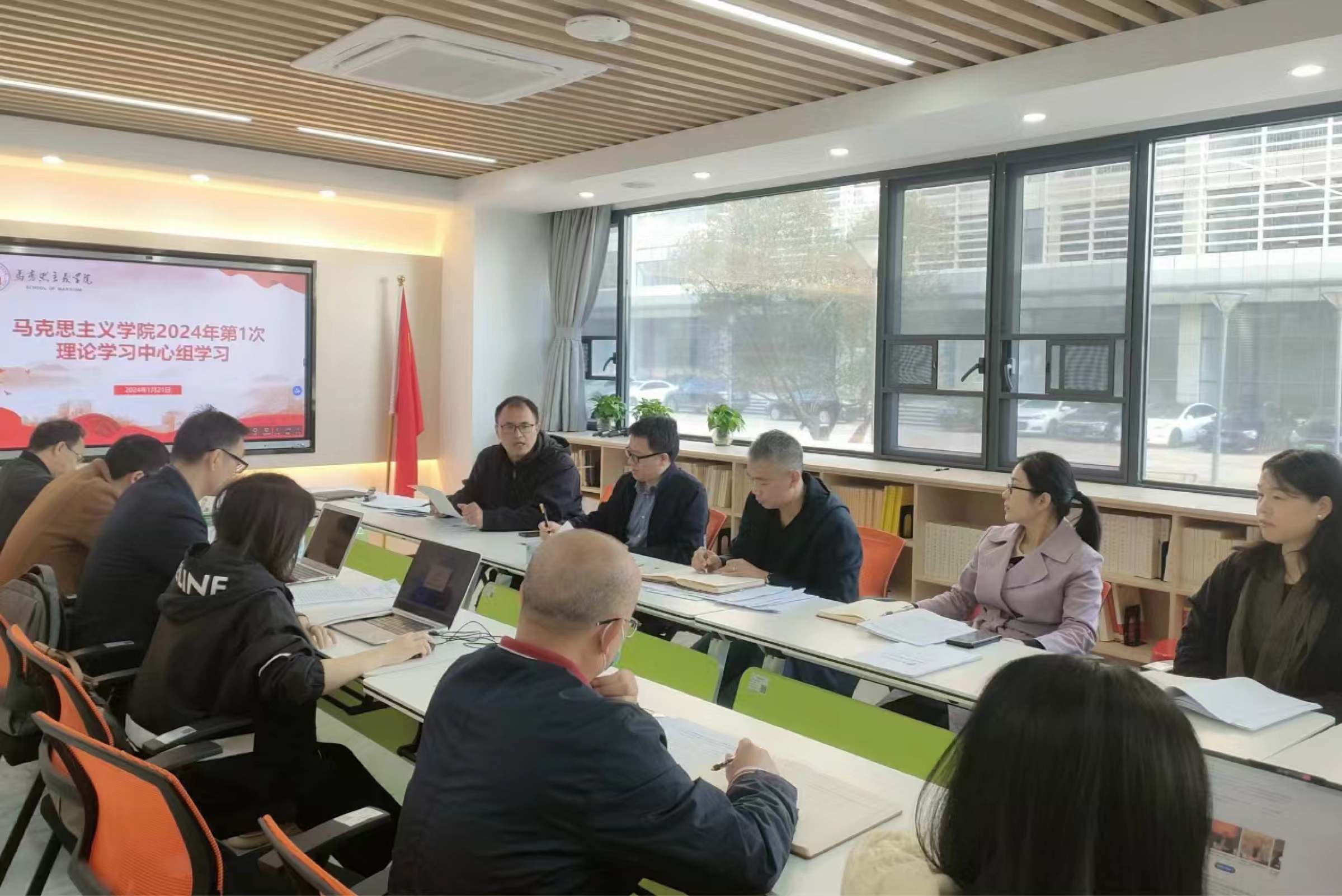 1月21日上午,马克思主义学院党委按照学校党委部署和学院理论学习计划,开展了2024年第1次理论学习中心组学习,专题学习习近平总书记在中央经济工作会议上的重要讲话和中央经济工作会议精神。本次专题学习由党委委员、副院长孙晓晖教授领学,学院领导班子成员、党支部书记、教研室主任和办公室主任、组织员参加学习,专题学习由学院党委书记张小洁主持。