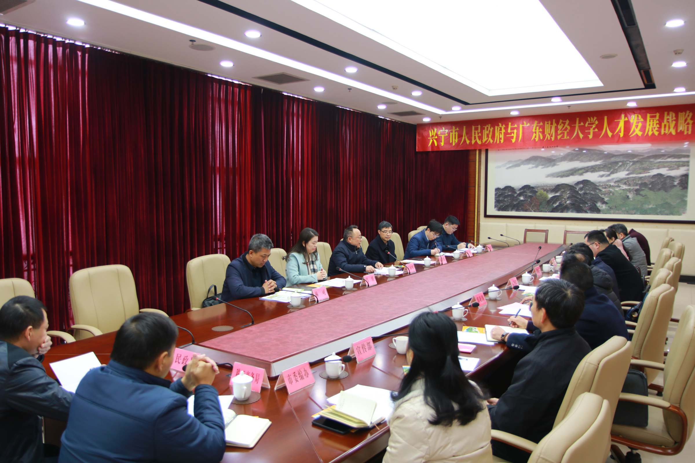 25日下午,我校与兴宁市人民政府签署人才发展战略合作框架协议暨全民数字素养与技能培训基地兴宁中心揭牌仪式在兴宁市会展中心举行。校长于海峰,校党委常委、组织部部长郑金栈,社会合作处处长吕瑛、马克思主义学院院长袁继红等,兴宁市委副书记麦东阳,市委常委、副市长郭亚玮,教育局局长郭远林等参加仪式。兴宁市委常委、组织部部长黄静宏主持签约仪式。