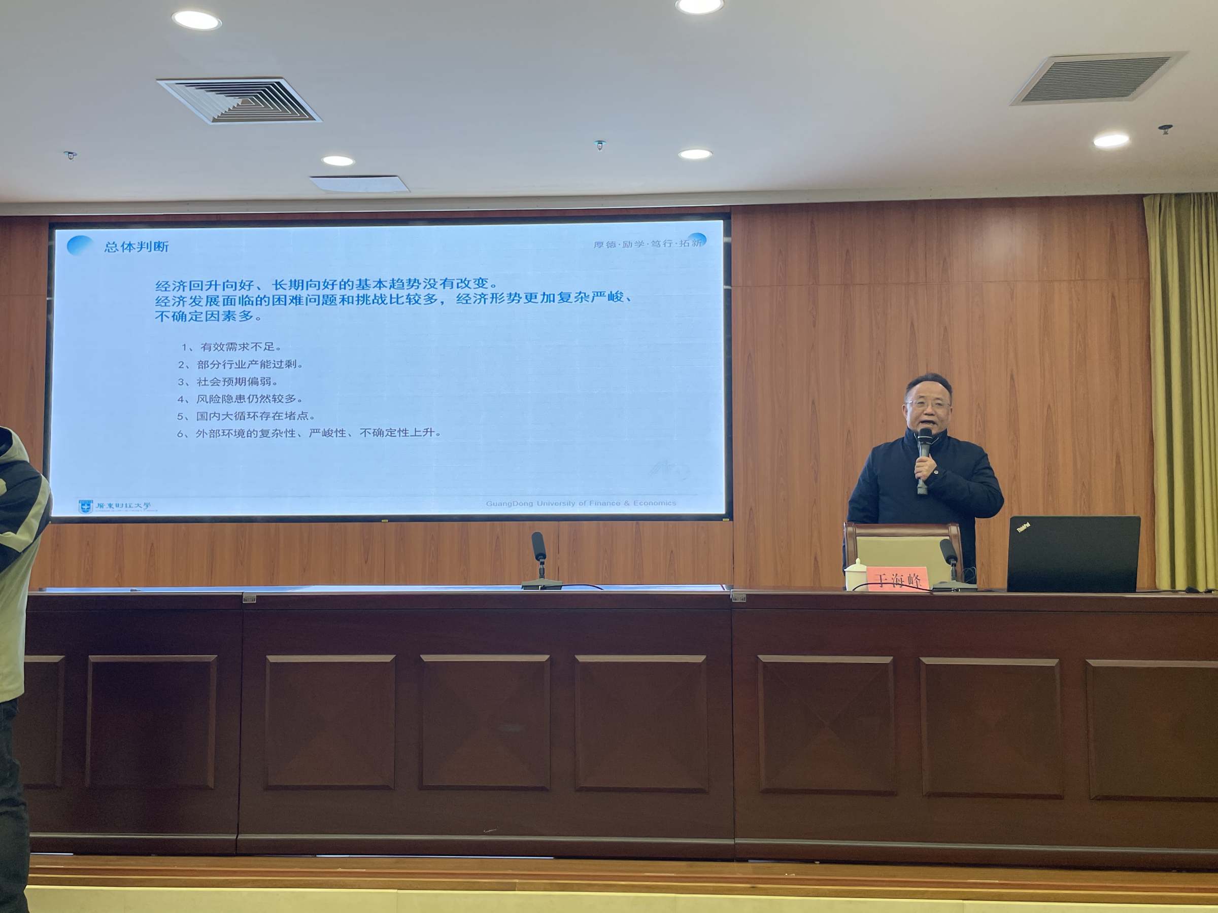 最后,他用“稳中求进、以进促稳、先立后破”概括了2024年宏观经济政策,表示要强化宏观政策逆周期和跨周期调节,继续实施积极财政政策和稳健的货币政策,加强政策工具创新和协调配合。讲座赢得了现场阵阵掌声。