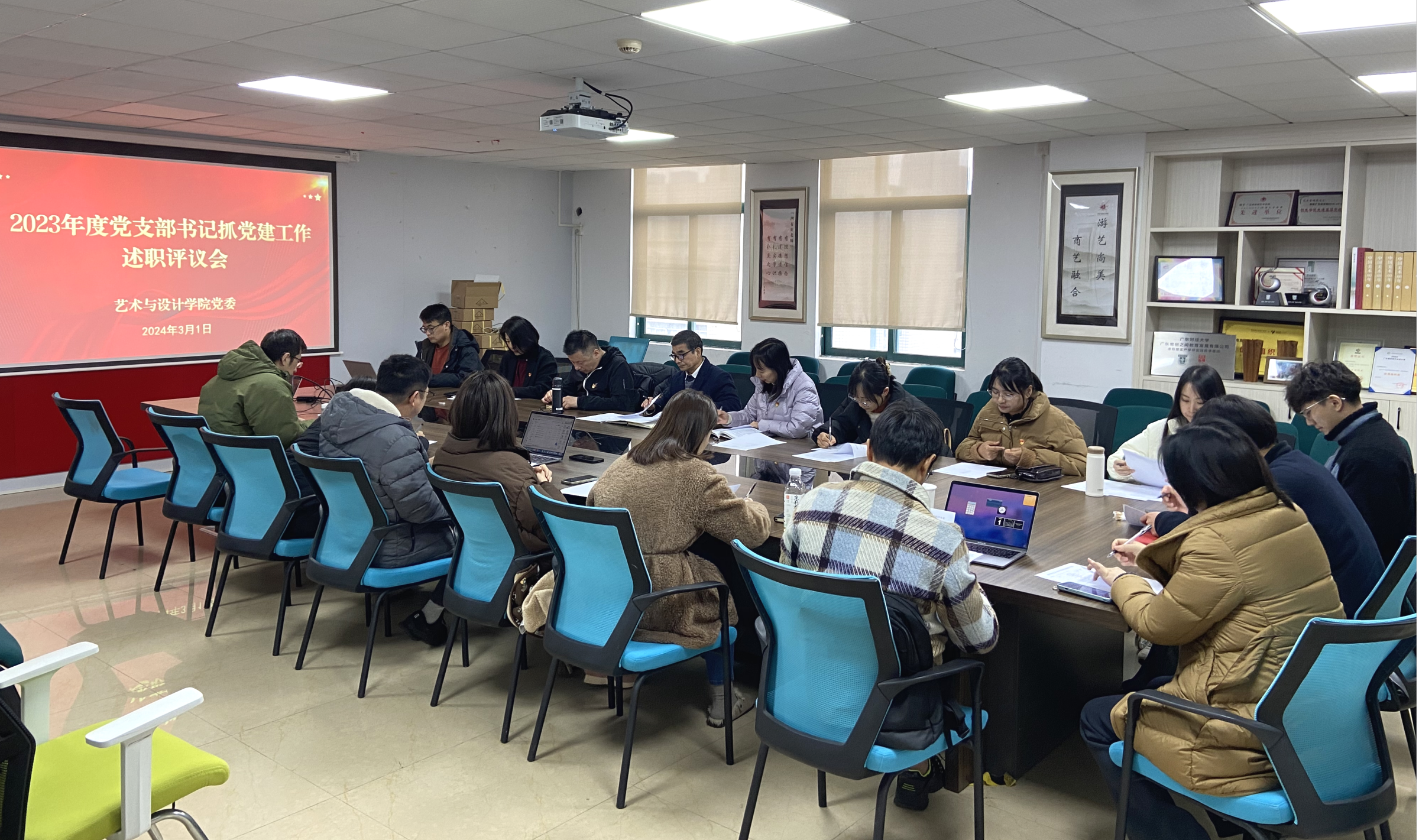 3月1日下午,艺术与设计学院党委在勤学楼901会议室召开2023年度党支部书记抓党建工作述职评议会。学院党委委员、党支部书记、教师党员代表、学生党员代表参加会议。学院党委各党支部书记依次进行工作述职,与会人员现场进行评议。