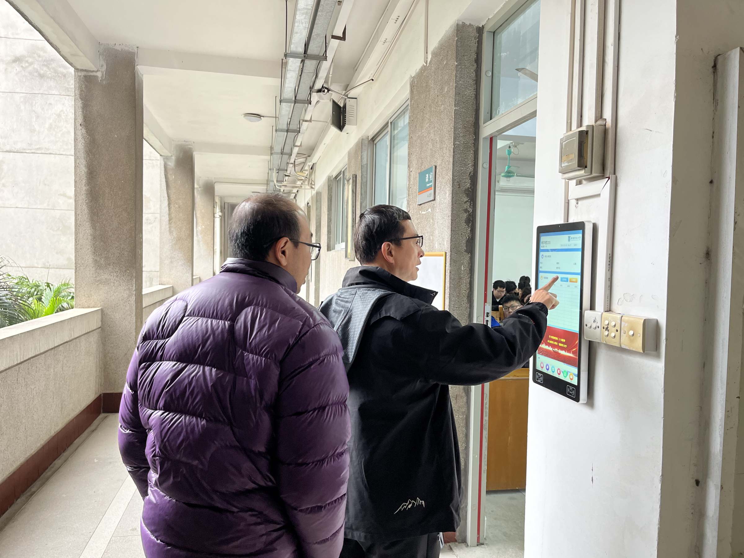 会议结束后,苏明华、钟雄星等学工部人员和各学院学生工作书记及辅导员等深入课堂检查新学期校风学风情况。他们随机检查了博学楼、勤学楼多个教室,仔细观察了学生们的学习状态、检查了到课情况,并与值班的校风学风督导员、民兵连队员们交谈,要求队员们在新学期继续做好校风学风的检查工作。学工人员在实地检查发现,新学期同学们的学习热情高涨,课堂氛围活跃,展现出了良好的校风学风。