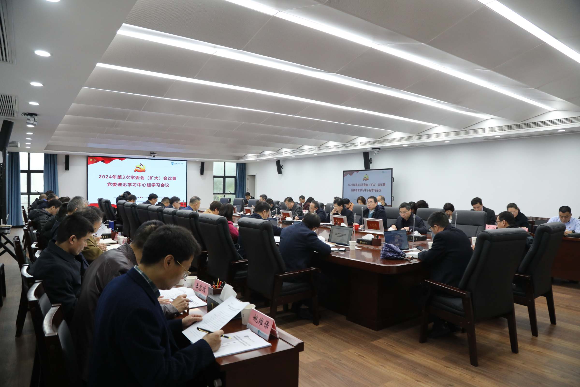 3月4日,学校召开第3次常委会(扩大)会议暨党委理论学习中心组学习会,传达学习习近平总书记在二十届中央纪委三次全会上的重要讲话精神和十三届省纪委三次全会精神,传达学习全省高质量发展大会精神,传达学习2024年全省教育工作会议精神,传达学习广东省学习贯彻习近平新时代中国特色社会主义思想主题教育总结会议精神,研究部署学校贯彻意见。校党委书记郑贤操主持会议并讲话,党委常委、党委委员、党的建设工作领导小组成员和二级党组织书记参加会议,11位职能部门及二级党组织书记代表围绕学习主题作交流发言。