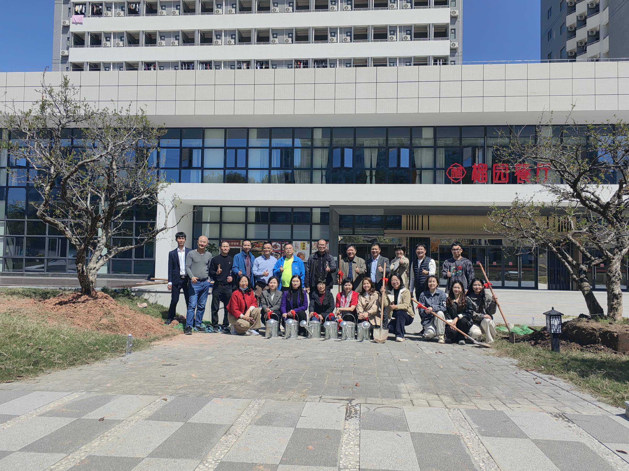 春回大地万物新,植树添绿正当时!3月12日上午,为庆祝第46个“3·12”植树节,深入贯彻习近平生态文明思想,牢固树立和践行绿水青山就是金山银山的理念,积极推进绿美广东生态建设,学校组织开展了“我为榴园添新绿”师生义务植树活动,校党委副书记、校工会主席刘祖华,后勤处处长胡卫标,广州市德润餐饮管理有限公司董事长朱文艺,后勤处、研究生处及研究生会等师生代表参加了义务植树活动,在广州校区榴园餐厅东门和南门外分别种植了两颗红石榴树,为榴园增添了一抹绿。