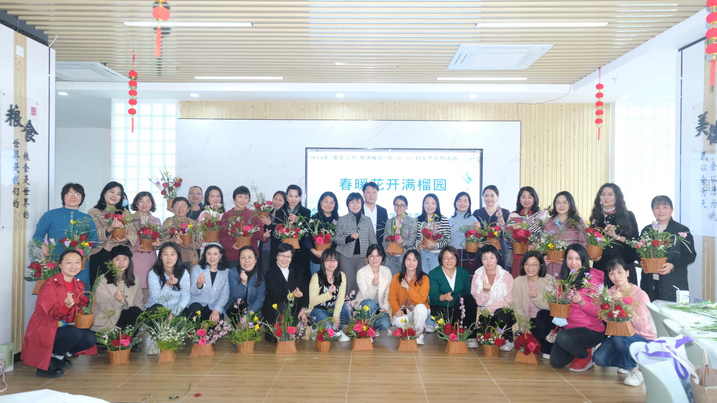 3月12日下午,由校工会主办的2024年“爱在三月 情满榴园”庆“三·八”妇女节系列活动之“春暖花开满榴园”插花活动在榴园餐厅二楼活动区举行,全校近百位插花爱好教职工齐聚一堂共赴芳菲春日之约,校工会常务副主席陈红丽、专职副主席廖凌杰参加活动。