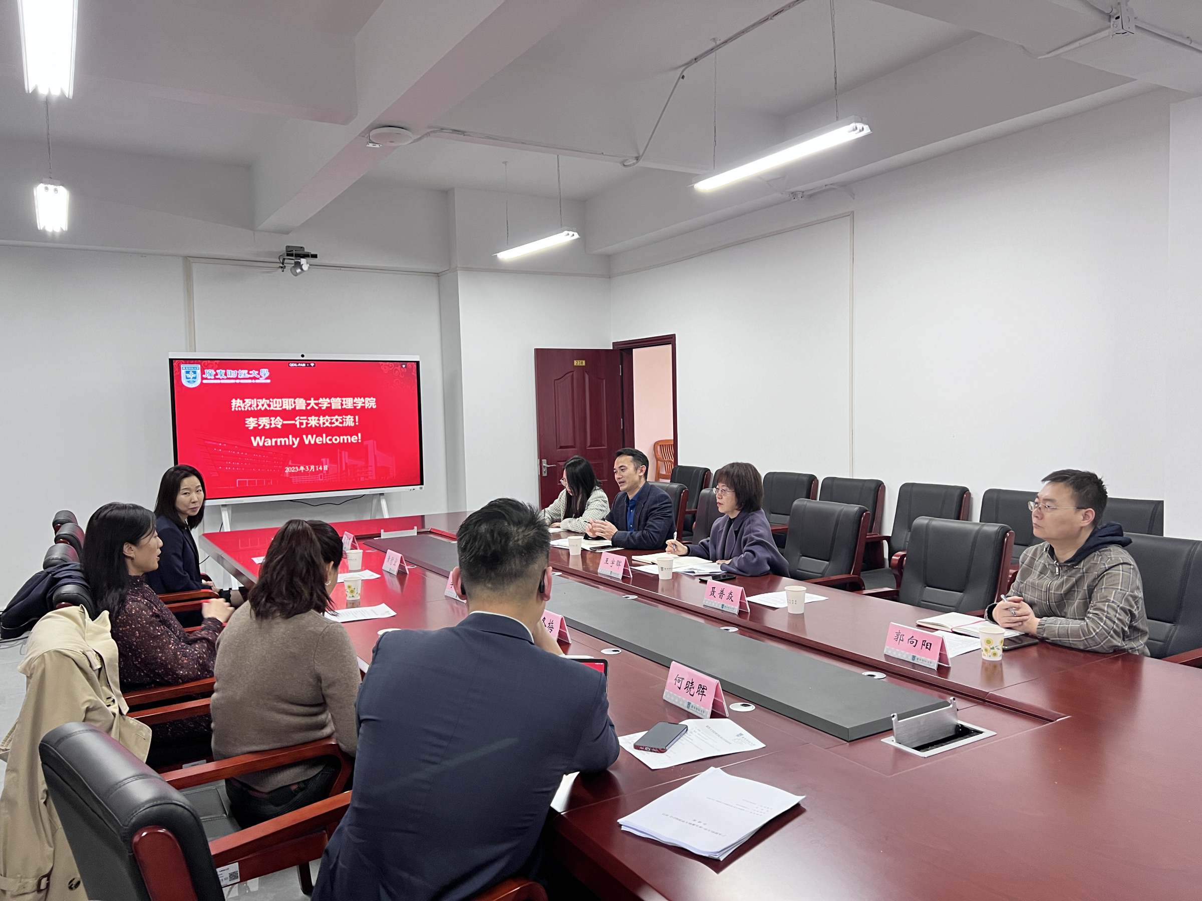 3月14日下午,耶鲁大学管理学院亚洲项目助理院长李秀玲访问我校。国际交流与合作处处长王宇晖、副处长郭向阳、经济学院院长聂普焱、工商管理学院/粤商学院/创新创业学院副院长谢斌等会见来宾并进行友好洽谈。