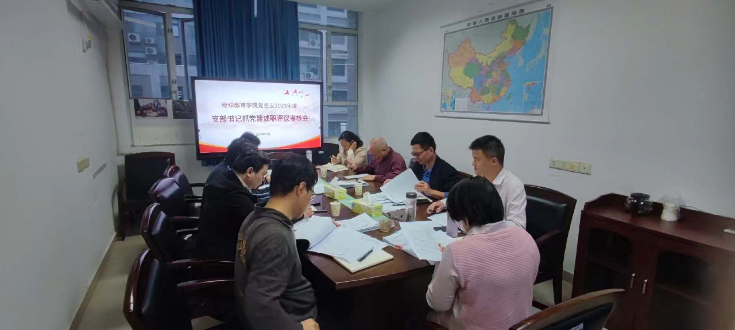 3月15日,继续教育学院党总支在善学楼604室召开2023年度党支部书记抓党建工作述职评议考核会。学院党总支委员、各党支部书记参加会议,学院党总支书记蔡楷有主持会议。