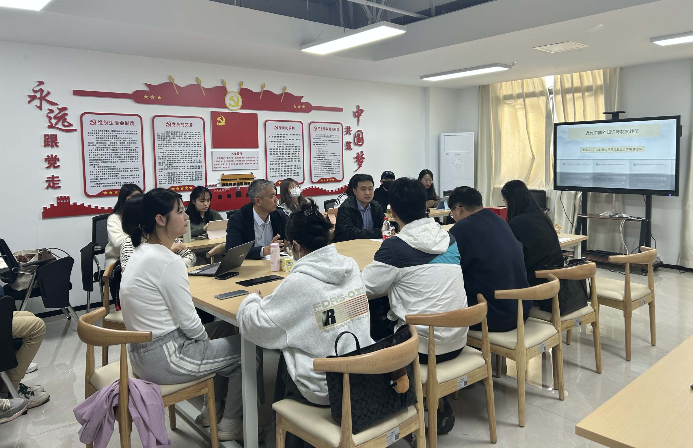 3月19日下午,由马克思主义学院、研究生院和大湾区青年马克思主义教育科普基地联合主办,校工会“思想政治引领之家”协办的第十五期“启润”经典读书会于33栋揽月楼“一站式”学生社区党建活动室圆满举行。本次读书会以“近代中国的知识与制度转型”为主题,由马克思主义学院廖志伟老师领读,2023级研究生何胤主持,学院党委书记张小洁、院长助理黄瑜教授和全体硕士研究生参加。