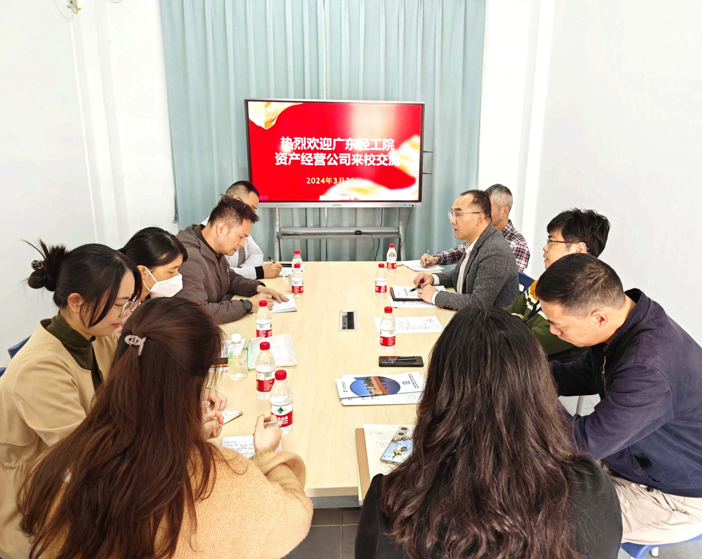 3月20日上午,广东轻工职业技术学院资产经营有限公司总经理陈杰东带领公司相关部门负责人一行5人来我校开展交流。广东财大资产经营有限公司董事长龚义荣、副总经理陈展才、相关部门负责人参加了交流。