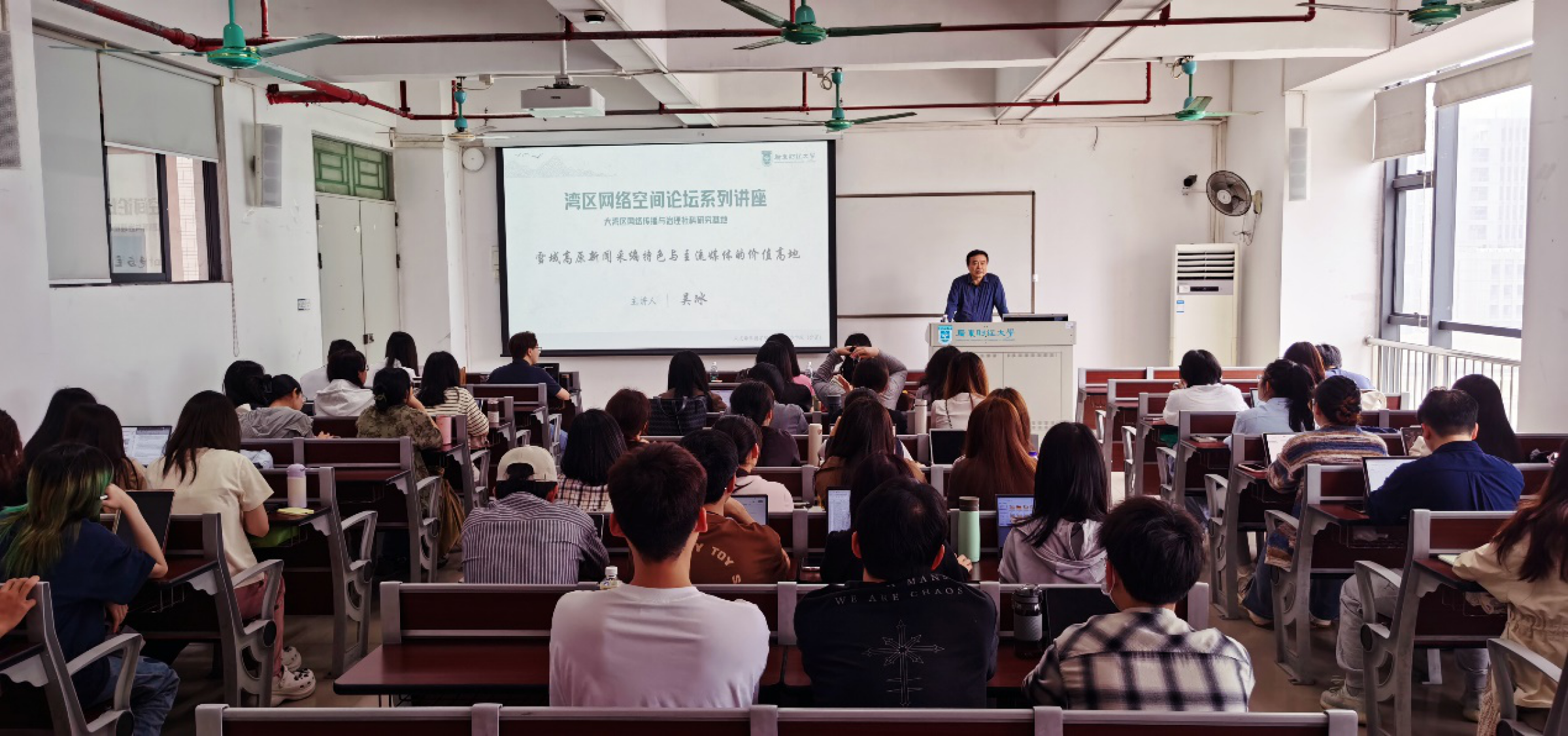 近日,广东省社科研究基地广东财经大学大湾区网络传播与治理研究中心2024年度“湾区网络空间论坛系列讲座”开讲,曾任人民日报社广东分社副社长、西藏日报社党委委员、副总编辑,现任中央报刊驻广东记者协会执行会长、广东省新闻学会副会长、人民日报高级记者、作家、诗人吴冰先生,应邀作题为“雪域高原新闻采编特色与主流媒体的价值高地”的学术报告,报告会由网络传播系副主任朱立芳博士(网名“青椒姐姐”)主持。人文与传播学院、网络传播学院青年教师、出版和新闻与传播硕士研究生现场聆听了报告。