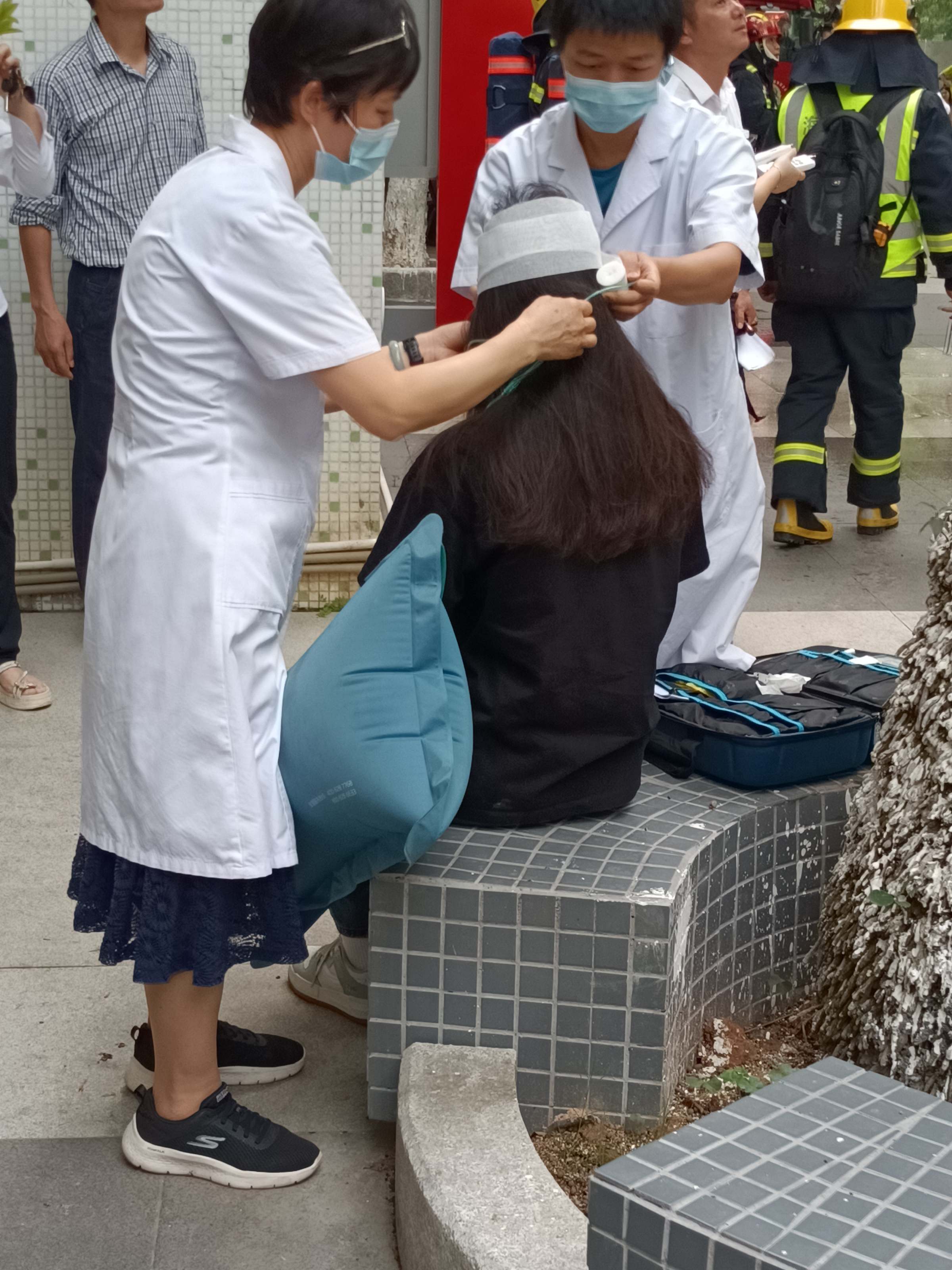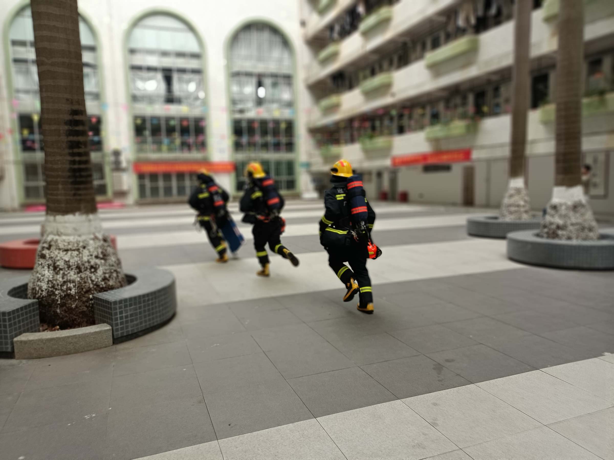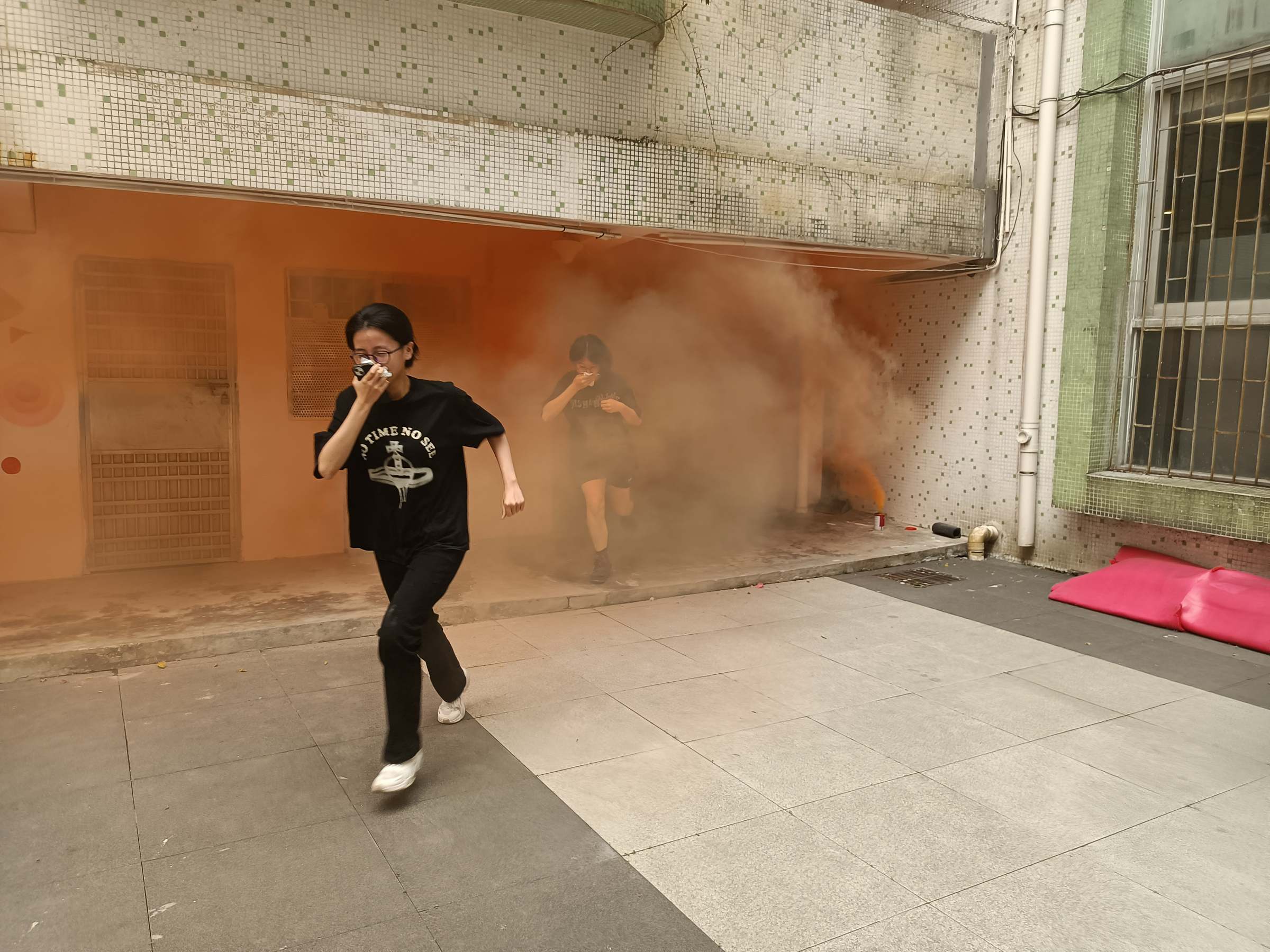 本次消防应急演练地点设置在广州校区第27栋学生宿舍,模拟宿舍楼发生火灾时的处置过程,包括报告火情、疏散撤离、秩序维护、交通管制、人员救助、火灾处置、医疗救护等演练科目。