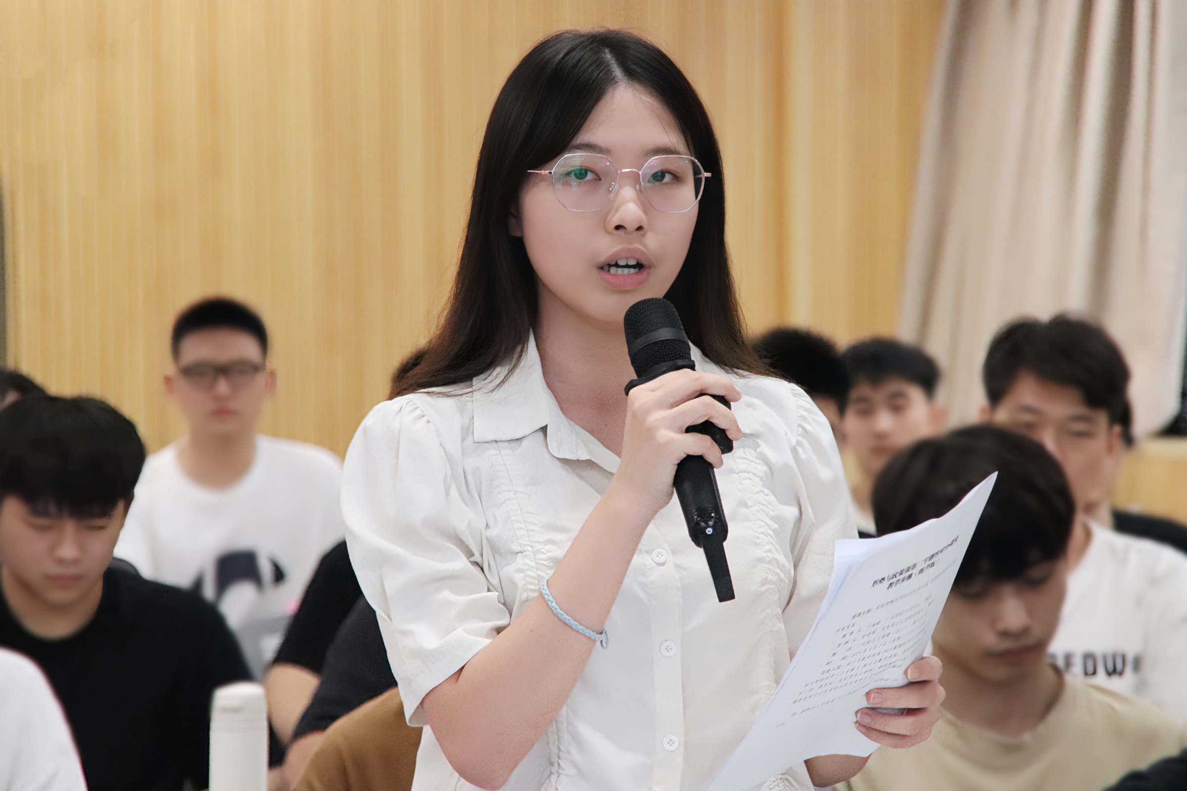 主题讲授结束后,课堂教学进入独学内化、分组讨论、小组汇报阶段。学生结合授课内容,阅读相关材料,独立思考,提出问题并进行讨论,8个小组围绕如何看待2024年我国经济社会发展面临的内外部环境、如何破解广东城乡区域发展不平衡、青年怎样主动融入广东高质量发展等主题进行了交流发言。