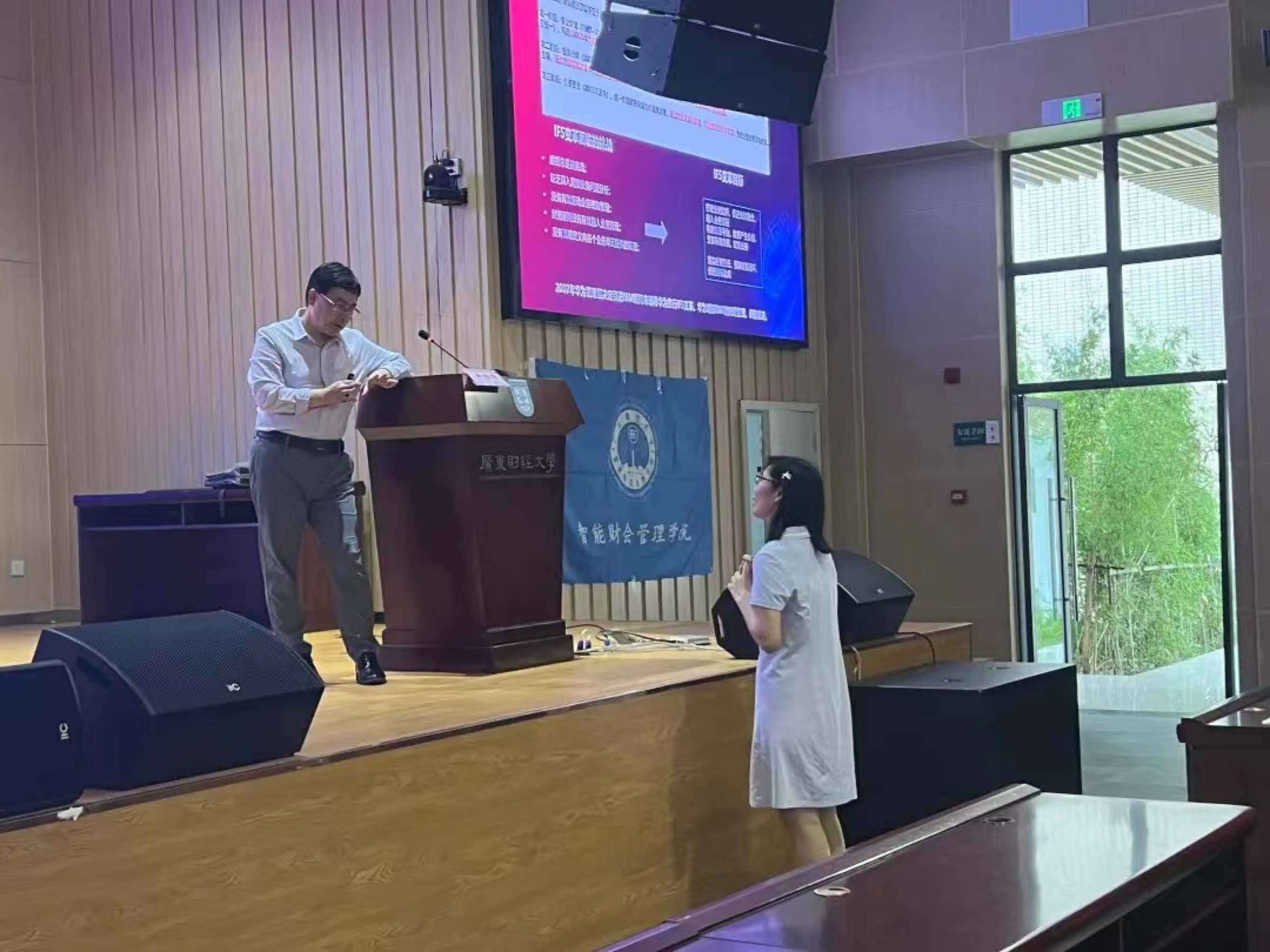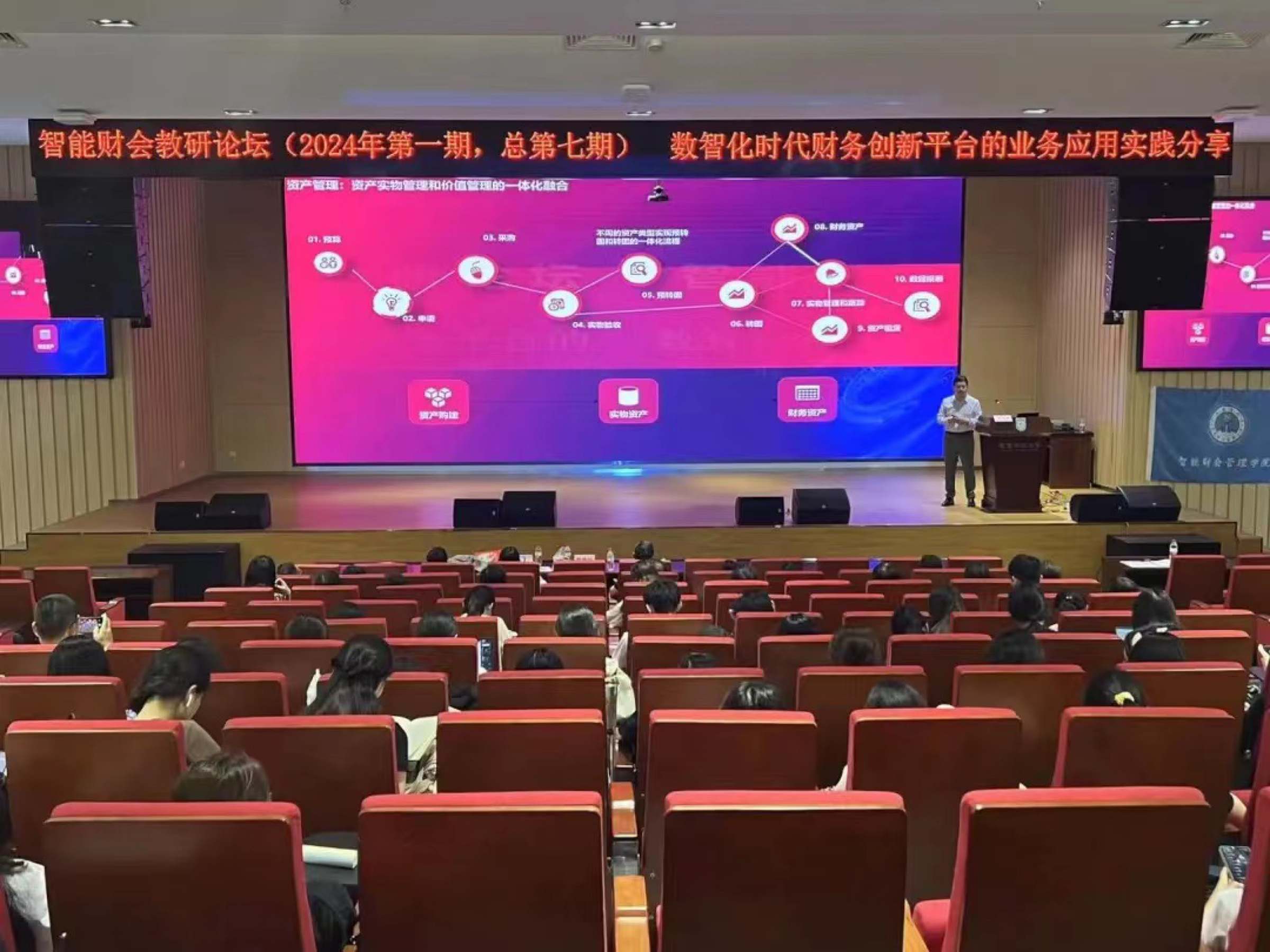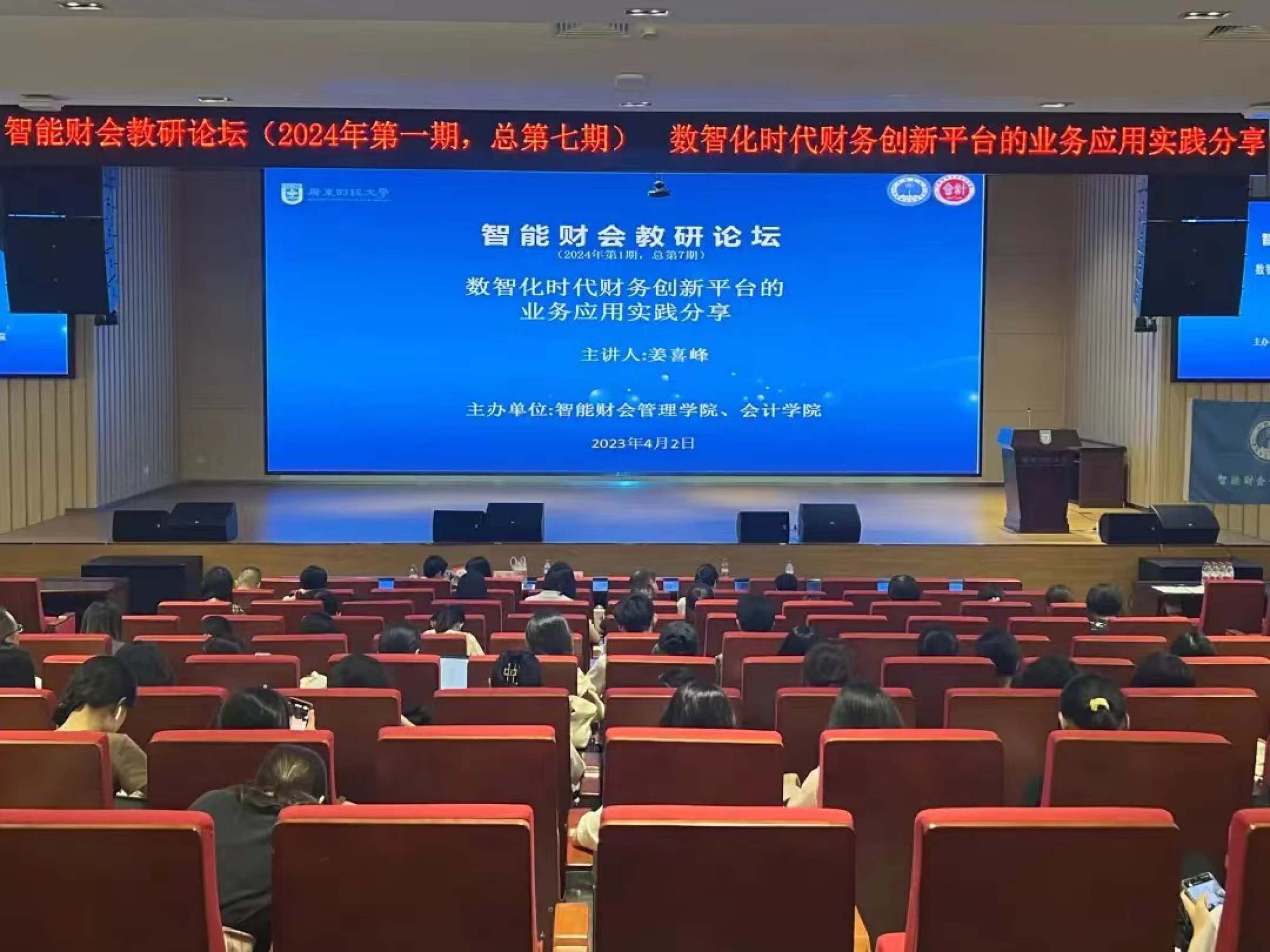 4月2日下午,我校智能财会管理学院和会计学院联合举办了智能财会教研论坛(2024年第1期,总第7期)。赛意业财研究院院长兼咨询部总监姜喜峰以“数智化时代财务创新平台的业务应用实践分享”为主题,受邀为学院师生分享财务创新平台的相关内容。智能财会管理学院全体教师及学生代表参加了本次讲座。