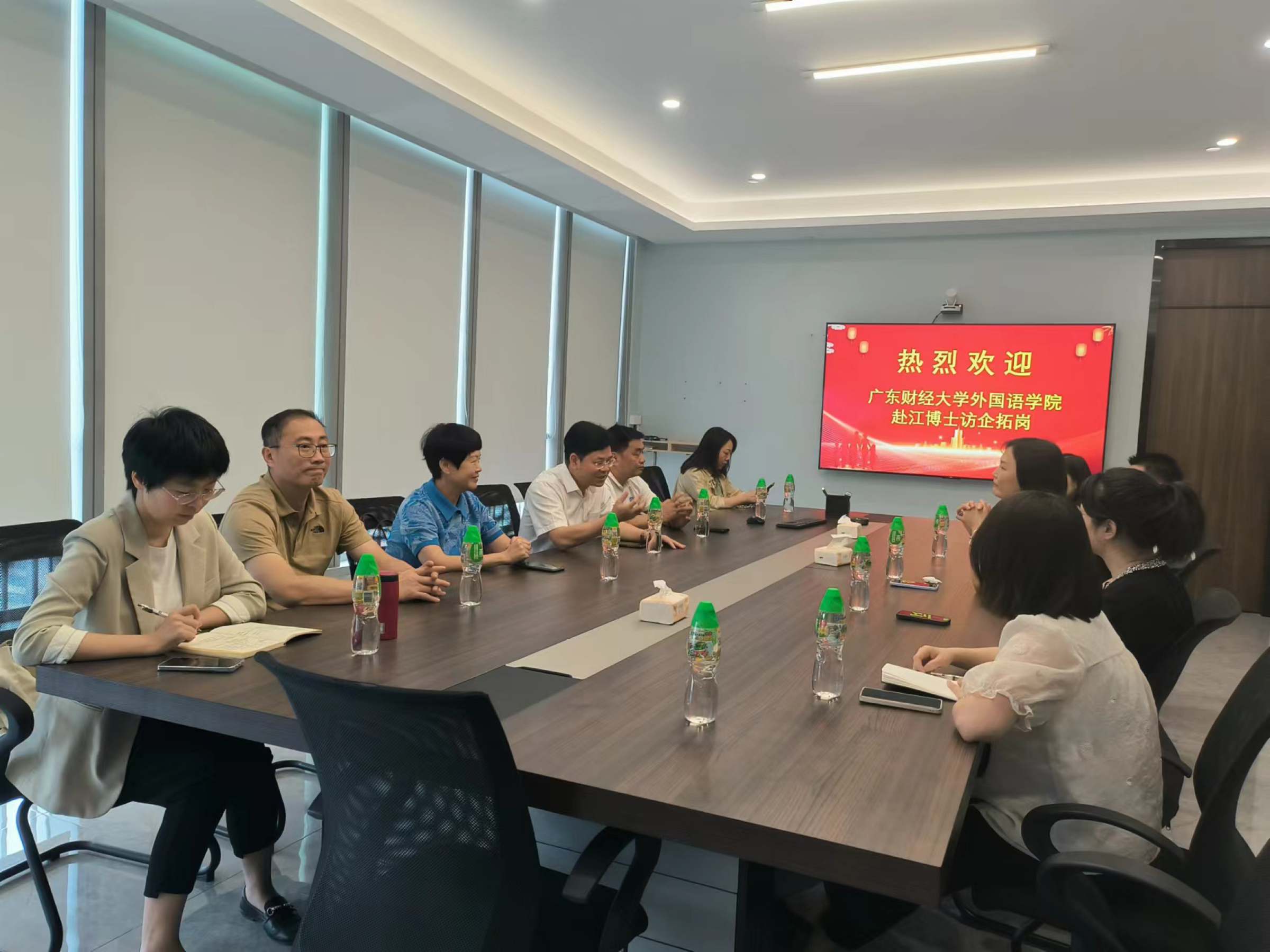 为深入贯彻落实教育部“访企拓岗促就业”专项行动要求,推动学生高质量充分就业,5月11日上午,学校党委副书记罗贤甲一行前往佛山南海广东足迹鞋业有限公司开展访企拓岗活动。外国语学院党委书记谭玉祥、院长陈冬纯、副院长周红辉、胡红辉、党委副书记张琦、商务英语系欧阳丽蓉等随行。广东足迹鞋业有限公司副总经理李绚滢带领公司主要部门负责人热情接待了罗贤甲一行。