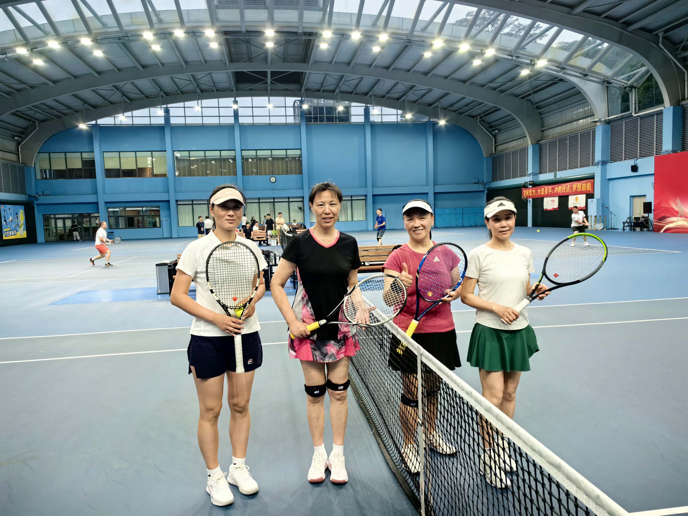 比赛一开始,我校网球队便迅速进入状态。在小组循环赛中,凭借扎实的网球基础、默契的团队配合、出色的战术执行,一路过关斩将,以小组第二的成绩成功晋级十六强。在淘汰赛中,他们更是展现了出色的竞技状态,无论是发球、接发球,还是底线对攻、网前截击,都展现出较高的技术水平,成功晋级四强。在半决赛中,不敌强大对手广东省体育局直属机关工会网球队,无缘晋级决赛。