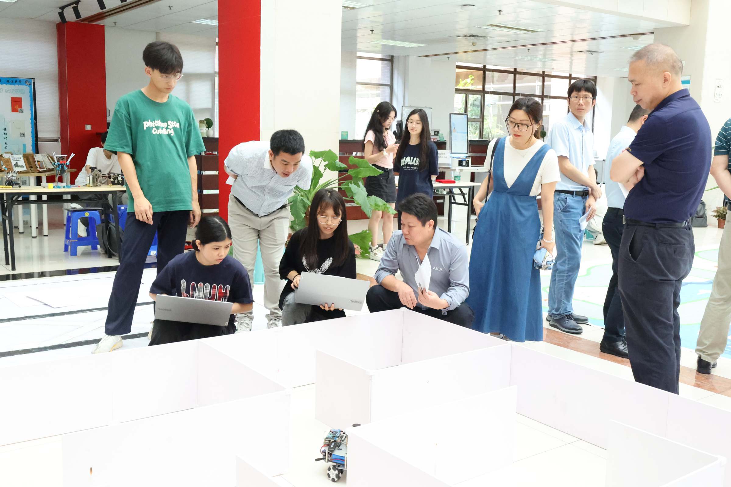 5月7日,由数字经济学院举办的我校第一届“沁湖杯”机器人大赛决赛在佛山校区图书馆一楼大厅圆满举行。学院党委书记李恩华、院长助理张严副教授,机器人研习社负责人陈振宇副教授、陈光明老师,全童科教(东莞)有限公司董事长秦志强、项目经理吴喜东出席了活动并担任评委。本届赛事分为消防救援、创意项目和智能交通三个赛道,九支参赛队伍进入决赛。