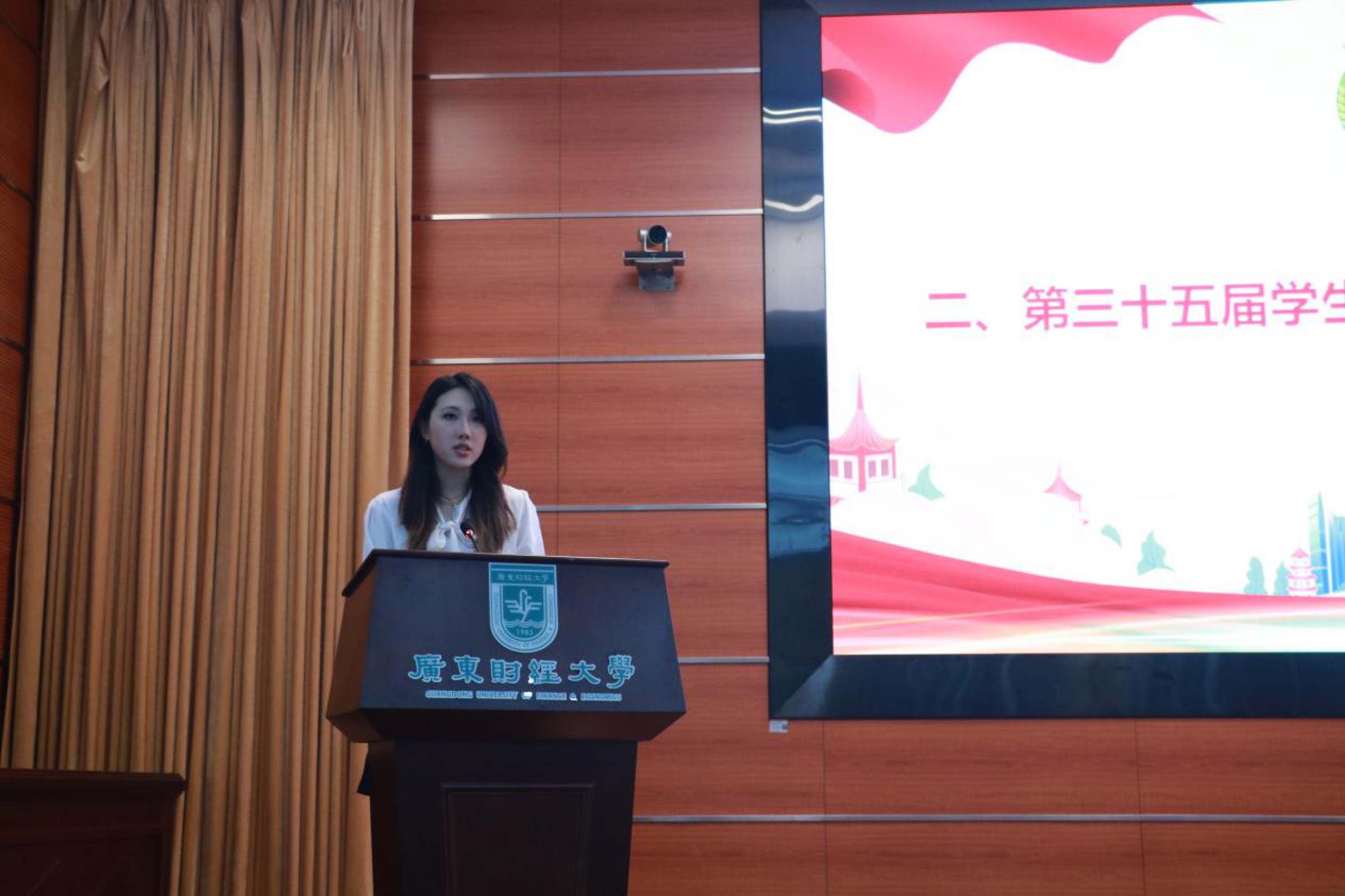 学院学生会主席吴玥桐作第35届学生会工作报告,全面回顾了过去一年学生会在思想引领、组织建设、校园文化活动、权益维护、学术实践、就业指导等方面的工作成果,报告内容详实、数据丰富,充分展示了我院学生会的工作风采和成效。