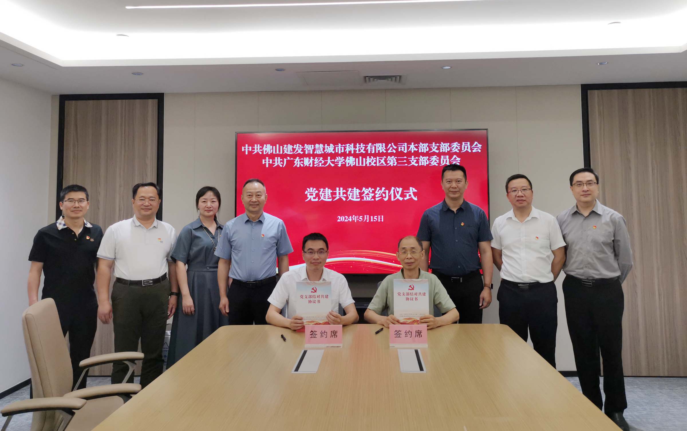 5月15日下午, 佛山校区党委书记、省市共建办公室主任王伟带队走访佛山建发智慧城市科技有限公司,并进行党支部共建协议签订仪式和业务交流座谈。