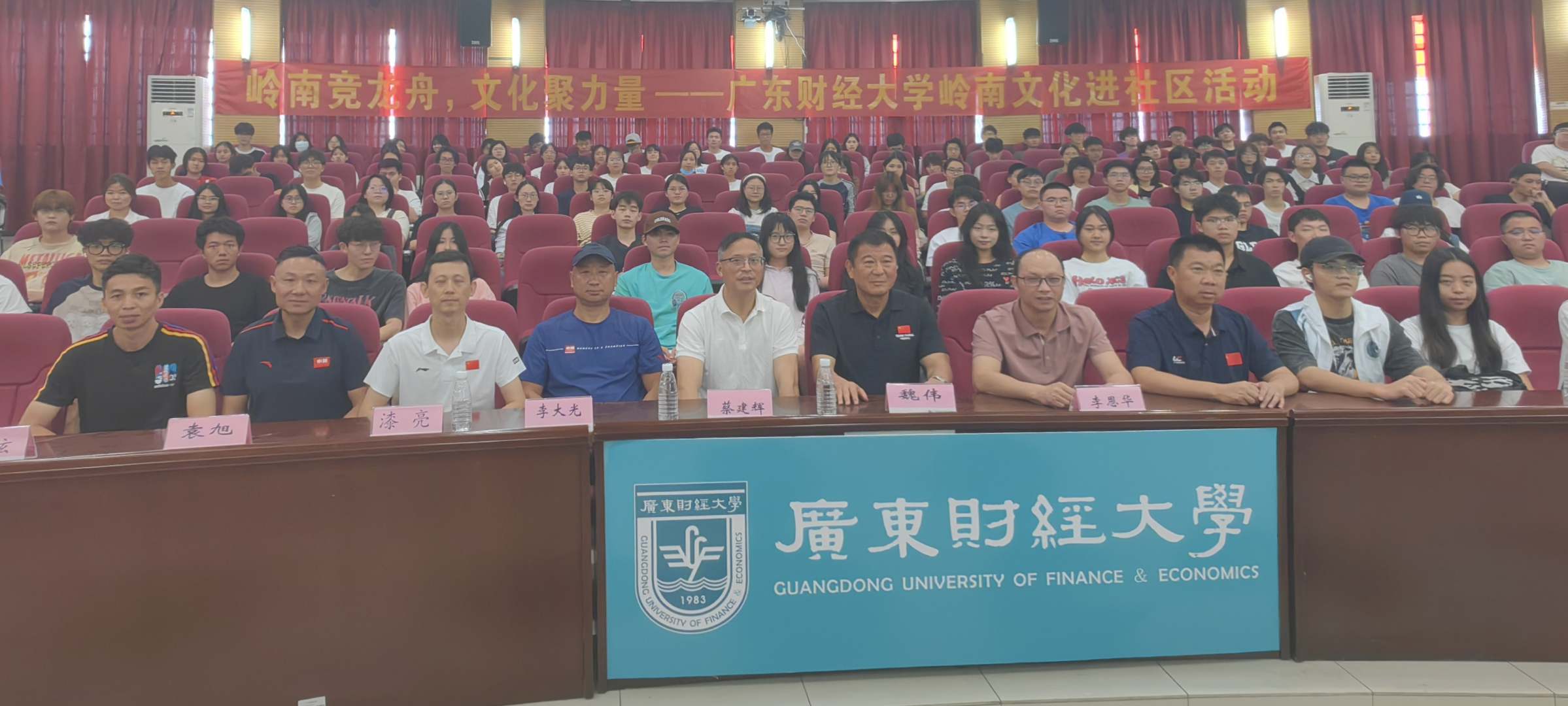 5月14日下午,由体育教学部、党委学生工作部和数字经济学院联合举办了“岭南竞龙舟、文化聚力量”龙舟文化进校园活动,本次活动邀请中国少数民族体育协会龙舟委员会主席魏伟开展“中国龙舟运动发展趋势”讲座,讲述龙舟运动文化。党委学生工作部部长苏明华、数字经济学院党委书记李恩华、体育教学部教师、我校学生龙舟队队员及各学院学生代表近三百人聆听讲座,讲座由体育教学部副主任蔡建辉主持。