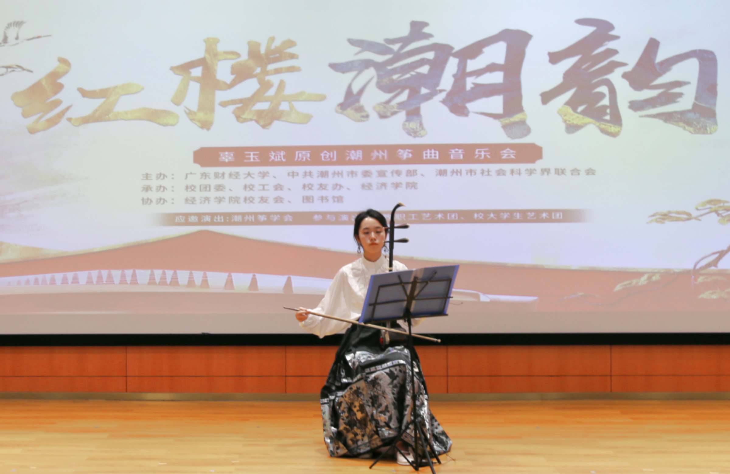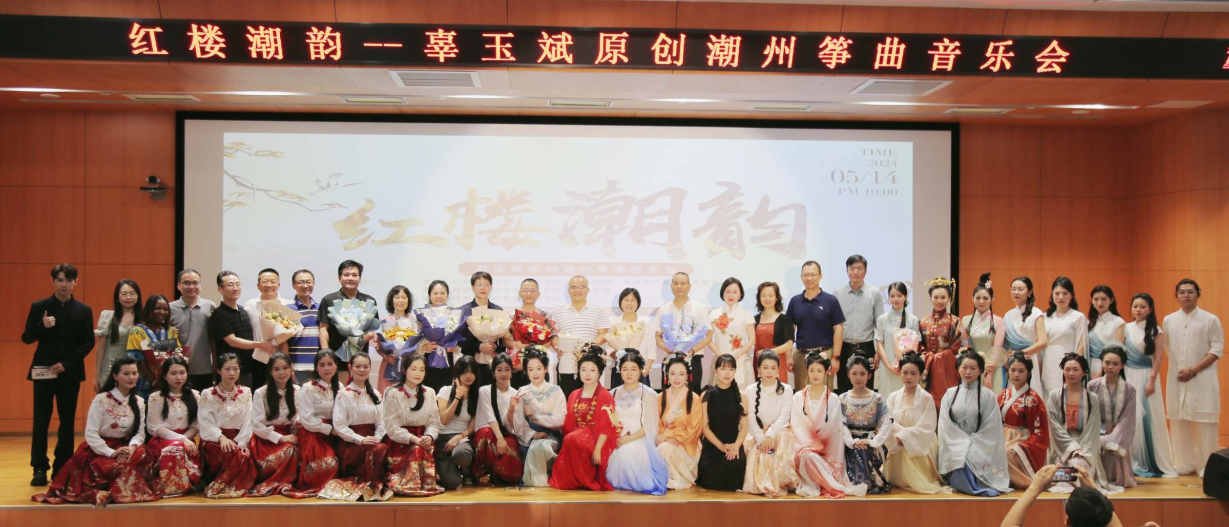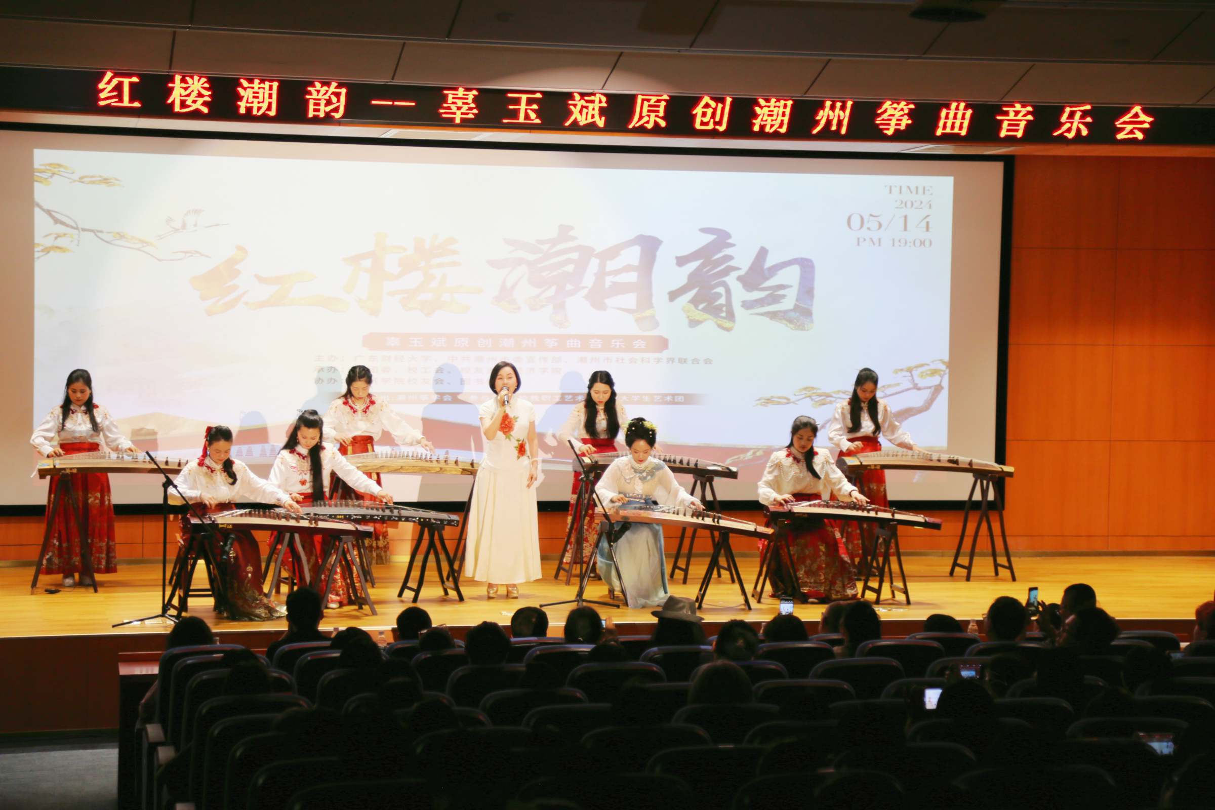 5月14日晚,由学校和中共潮州市委宣传部、潮州市社会科学界联合会共同主办“红楼潮韵——辜玉斌原创潮州筝曲音乐会”在正心堂上演。学校党委副书记罗贤甲,潮州市政协常委、市社科联主席、民进潮州市委会副主委沈寒晖,潮州市社科联四级调研员柯锐,古筝学者、演奏家、我校经济学院1991级国际经济与贸易专业校友辜玉斌等出席活动。我校师生、校友与校外观众共400余人观看了演出。